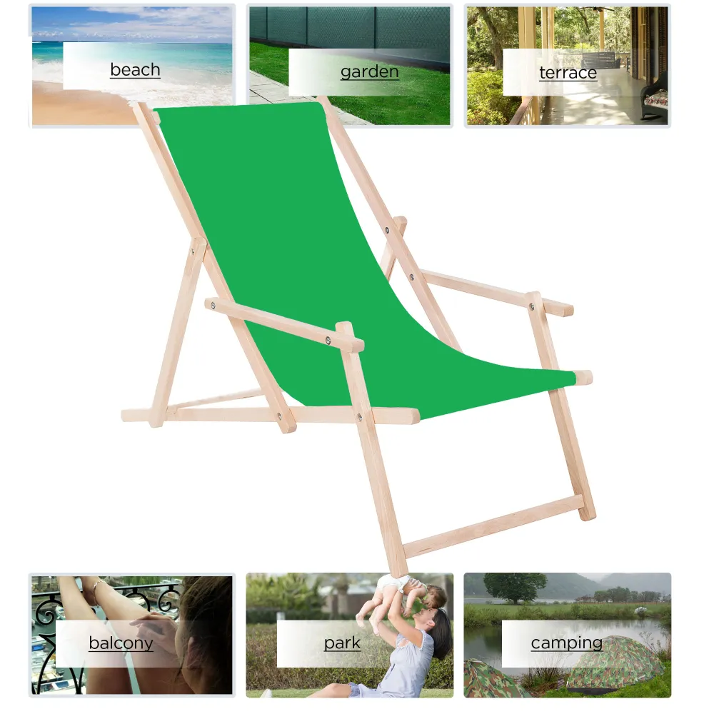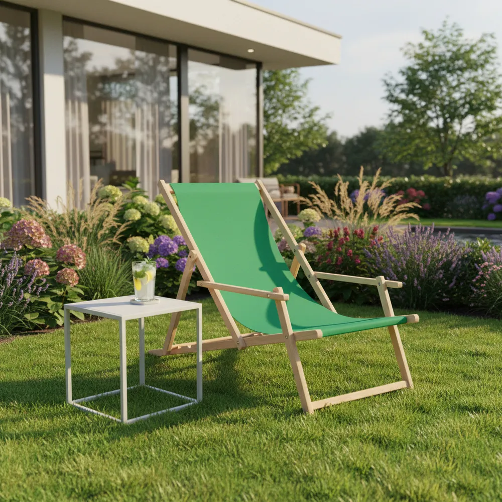 Záhradné drevené lehátko SPRINGOS TORINO zelené je ideálne pre relaxáciu na záhrade, terase aj v interiéri . Vďaka 3-stupňovému polohovaniu si ľahko nastavíte ideálnu pozíciu pre odpočinok. Opierky na ruky a pevný poťah zaisťujú maximálne pohodlie pri každom použití.