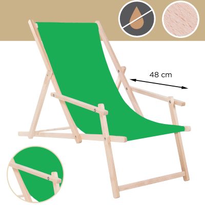Klasické drevené lehátko s opierkami rúk a nastaviteľným sklonom operadla. Odolný rám z bukového dreva, 3-krokové polohovanie s bezpečnostnou poistkou proti sklopeniu, nosnosť 120 kg. Perfektný na terasu, záhradu, k vode alebo na dovolenku. Ľahko sa skladá, premiestňuje aj uskladňuje.