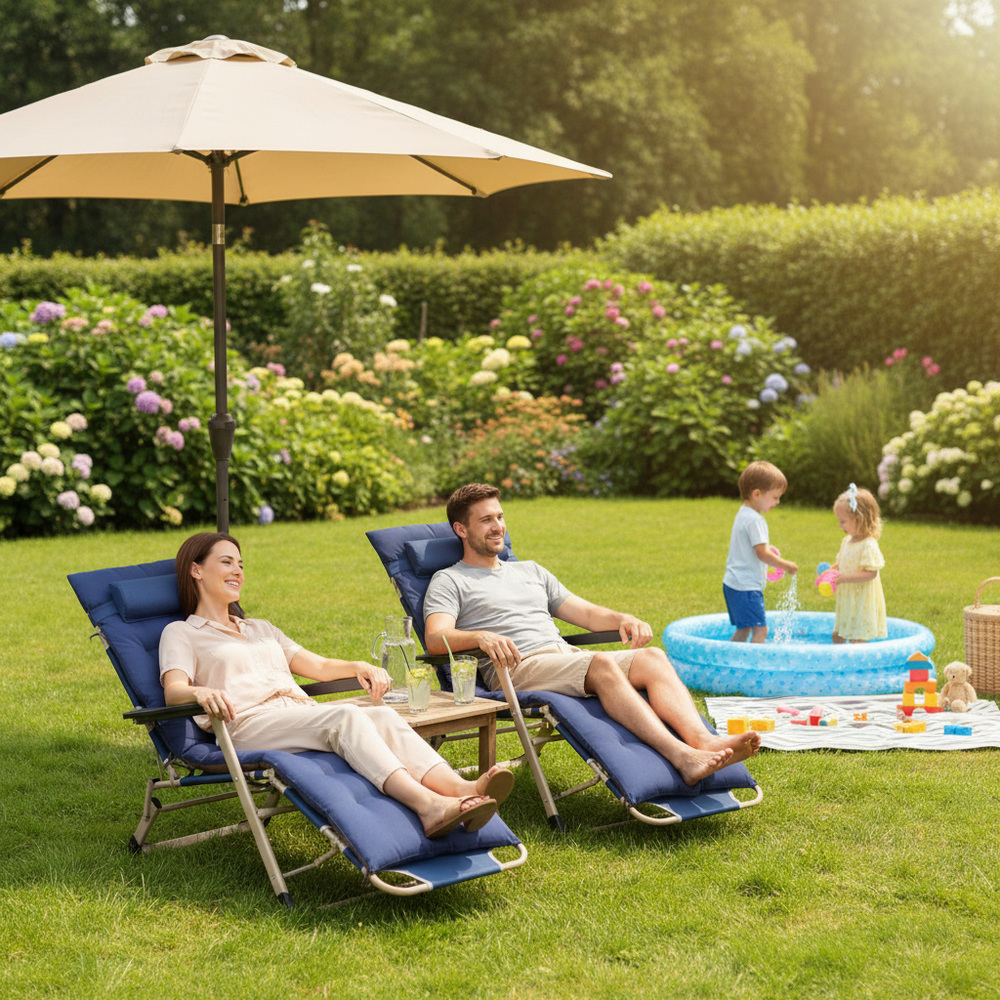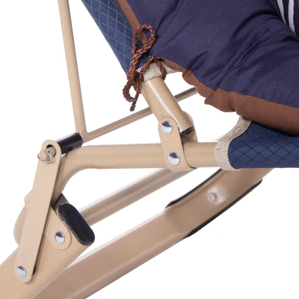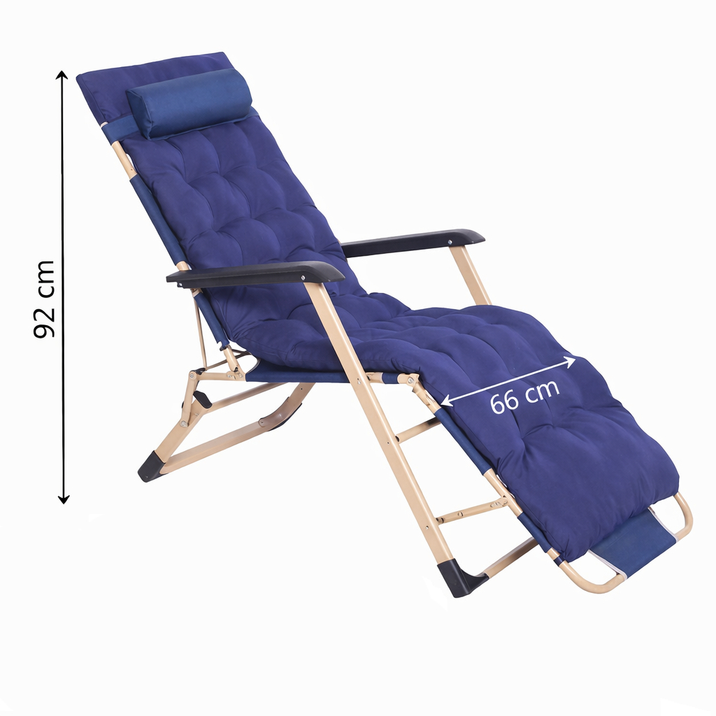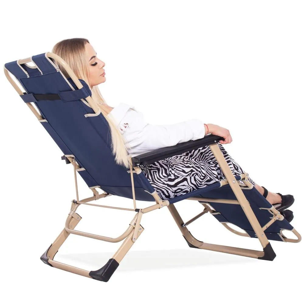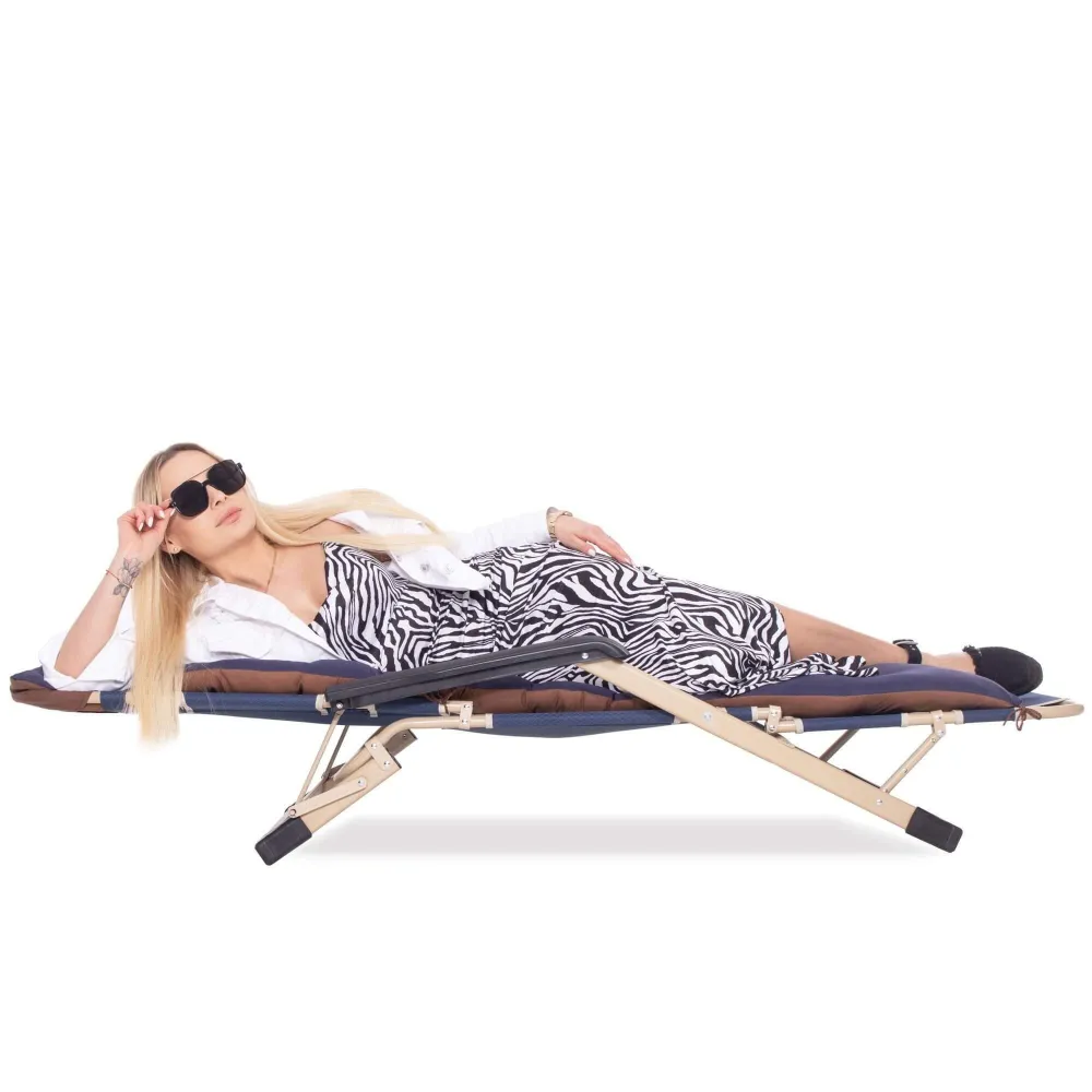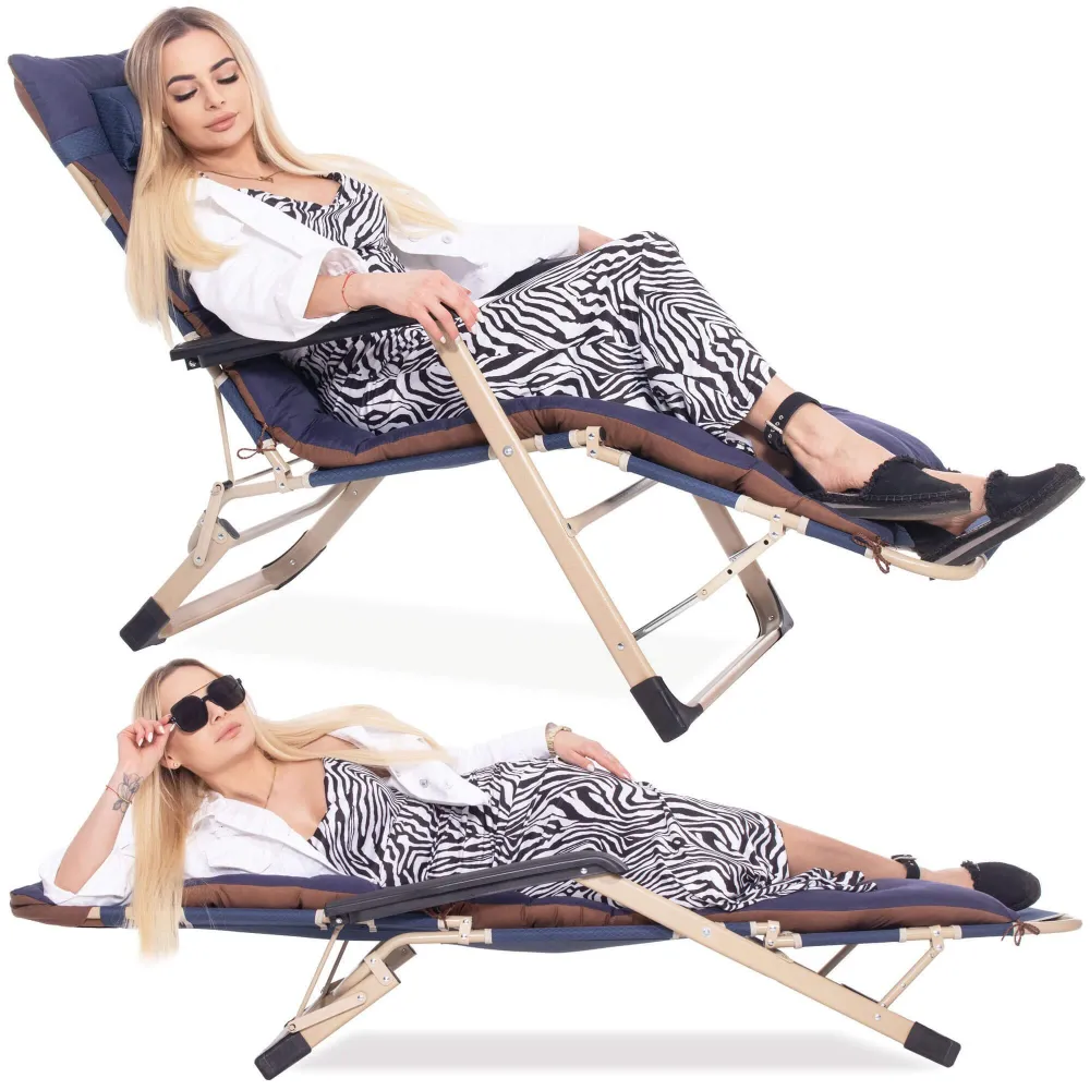 Komfortná výbava zahŕňa komfortný celotelový podsedák, opierku na nohy , pohodlné podrúčky a výškovo nastaviteľný podhlavník . Ideálna na záhradu, terasu alebo kempovanie.