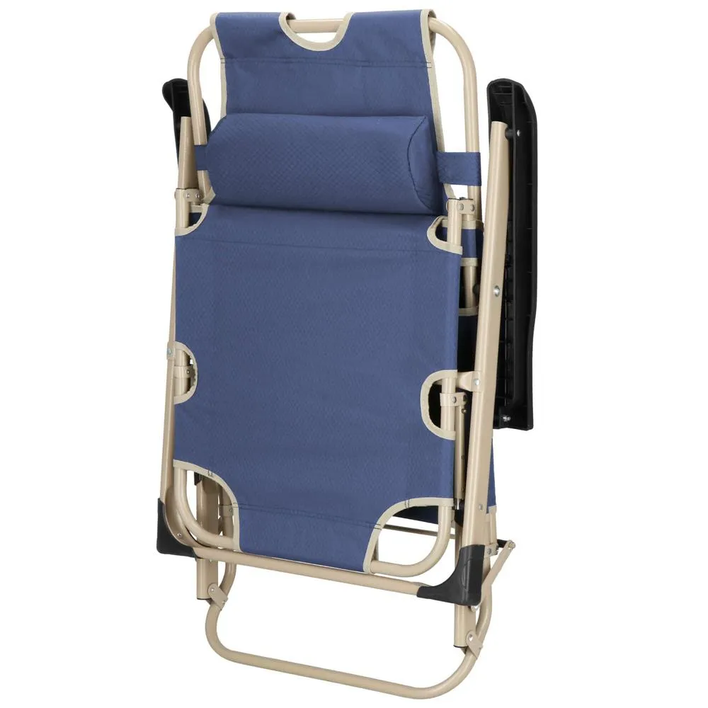 Polohovateľné rozkladacie kreslo s polstrovaným poťahom a veľmi odolnou konštrukciou vhodné na outdoorové aktivity aj záhradu. Komfortne vybavené s nezávisle nastaviteľnou opierkou na nohy aj sklonom operadla, vrátane funkcie lehátka. Jednoducho zložiteľné s minimálnymi nárokmi na skladovacie miesto. Nosnosť 120 kg.