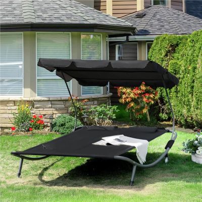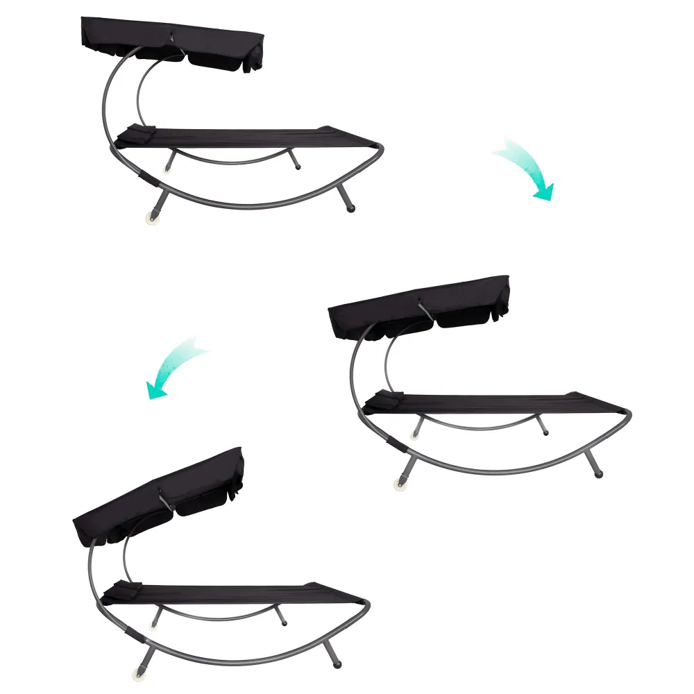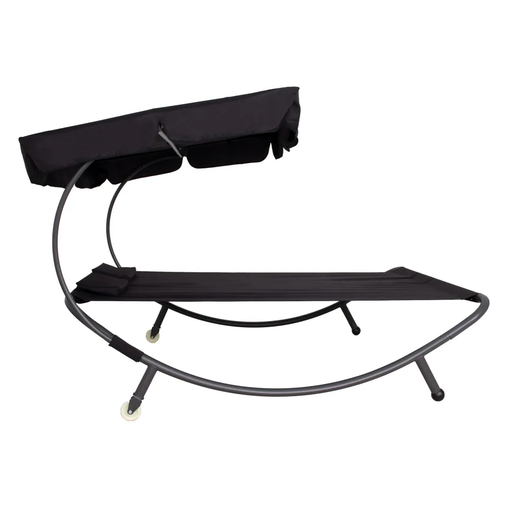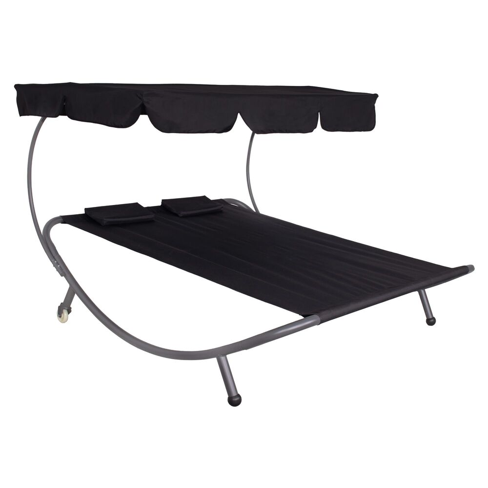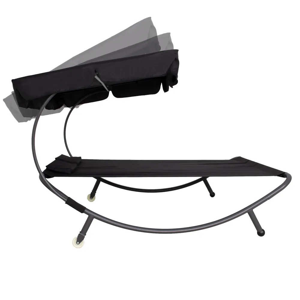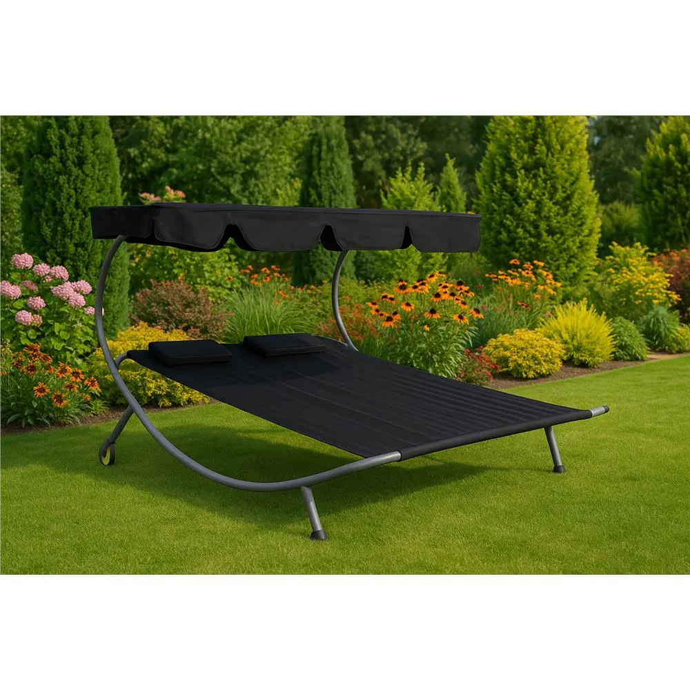 Dvojmiestne záhradné lehátko so strieškou SPRINGOS IBIZA čierne