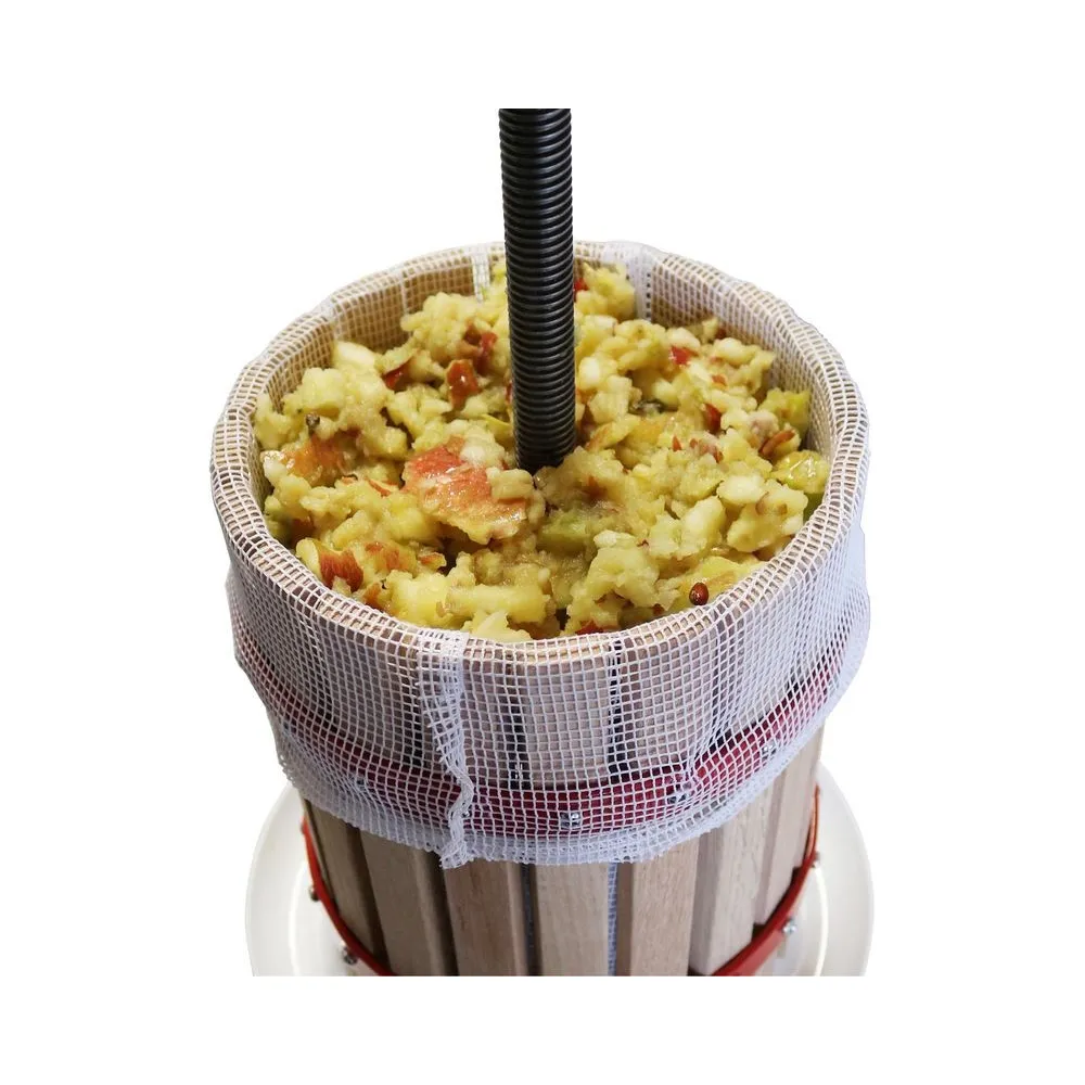 Lis na ovocie s mechanickým pohonom cez robustné vreteno, vhodný na spracovanie jabĺk, hrušiek, bobuľovín. Neošetrené drevo, lisovacia plachta...