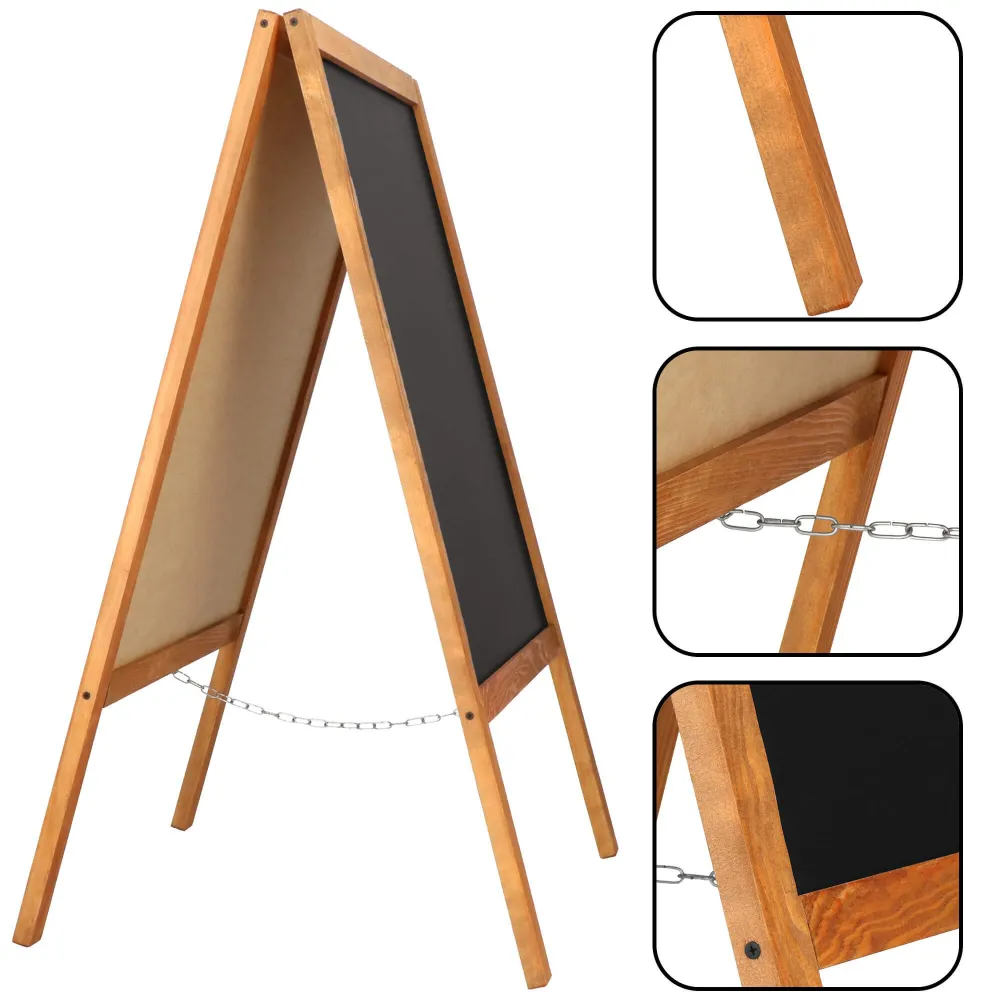 Reklamný stojan s rozmermi 60x100 cm je ideálny na prezentáciu ponúk, oznámení alebo reklamných oznámení. Vďaka obojstrannej kriedovej doske umožňuje maximálne využitie priestoru a ľahké prispôsobenie obsahu aktuálnym potrebám. Čierny povrch dosky je vhodný pre kriedy a ďalšie popisovače, čo umožňuje kreatívnu a pútavú prezentáciu. Tento stojan je skvelým doplnkom pre reštaurácie, kaviarne, obchody alebo akékoľvek prevádzky, ktoré chcú zaujať okoloidúcich.