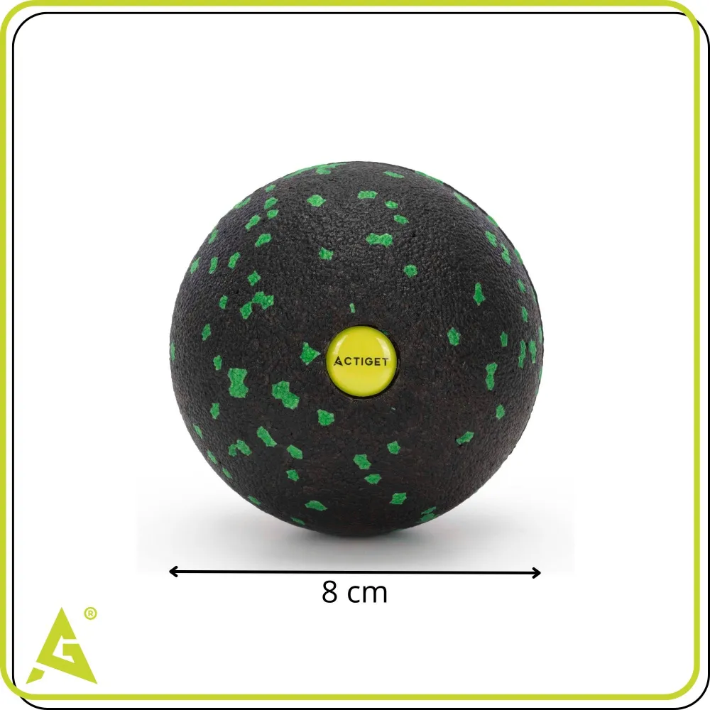 Masážna loptička ACTIGET ACT0096 čierno-zelená je praktická pomôcka pre účinnú a zároveň bezbolestnú masáž namáhaných svalov. Vďaka kompaktnému tvaru a priemeru 8 cm umožňuje presne cieliť tlak na chrbát, nohy, krk, zadok aj ďalšie časti tela . Stredná tvrdosť zaisťuje ideálnu rovnováhu medzi účinnosťou a komfortom, čo oceníte pri regenerácii po športe aj pri dlhom sedení.