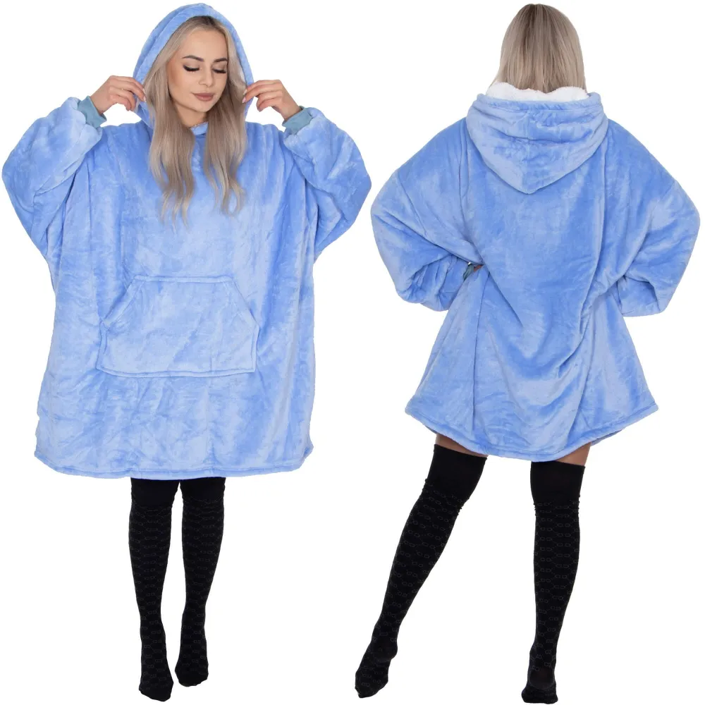 Táto elegantná oversize mikina je perfektným riešením pre všetkých, ktorí majú radi teplo, alebo sa neustále sťažujú na nízke teploty a ľahko mrznú. Mikina je veľmi teplá, pohodlná a príjemná na dotyk . Môžete sa v nej ľahko prechádzať po dome či byte, pohodlne ležať na pohovke pri televízii alebo spať. Skvelá na každodenné použitie. Dokonalá kombinácia 2 v 1 : dostanete mikinu, ktorú si oblečiete, a deku, do ktorej sa zabalíte.