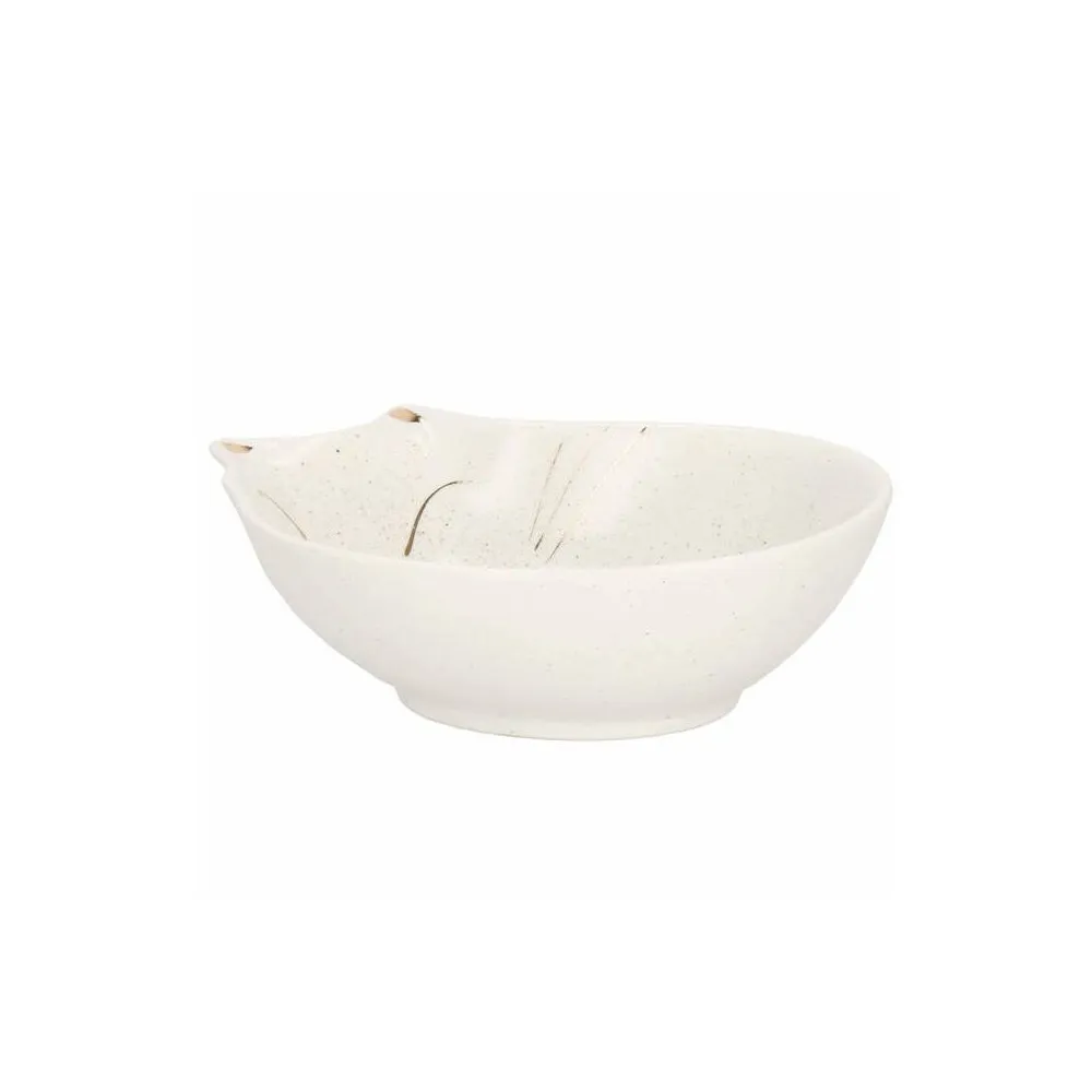 Keramická miska s rozmermi 11x15 cm. Kombinácia jedinečného vzhľadu a kvalitného materiálu. Netoxická keramika, krémová farba, ľahké čistenie, ideálna pre malé zvieratá.
