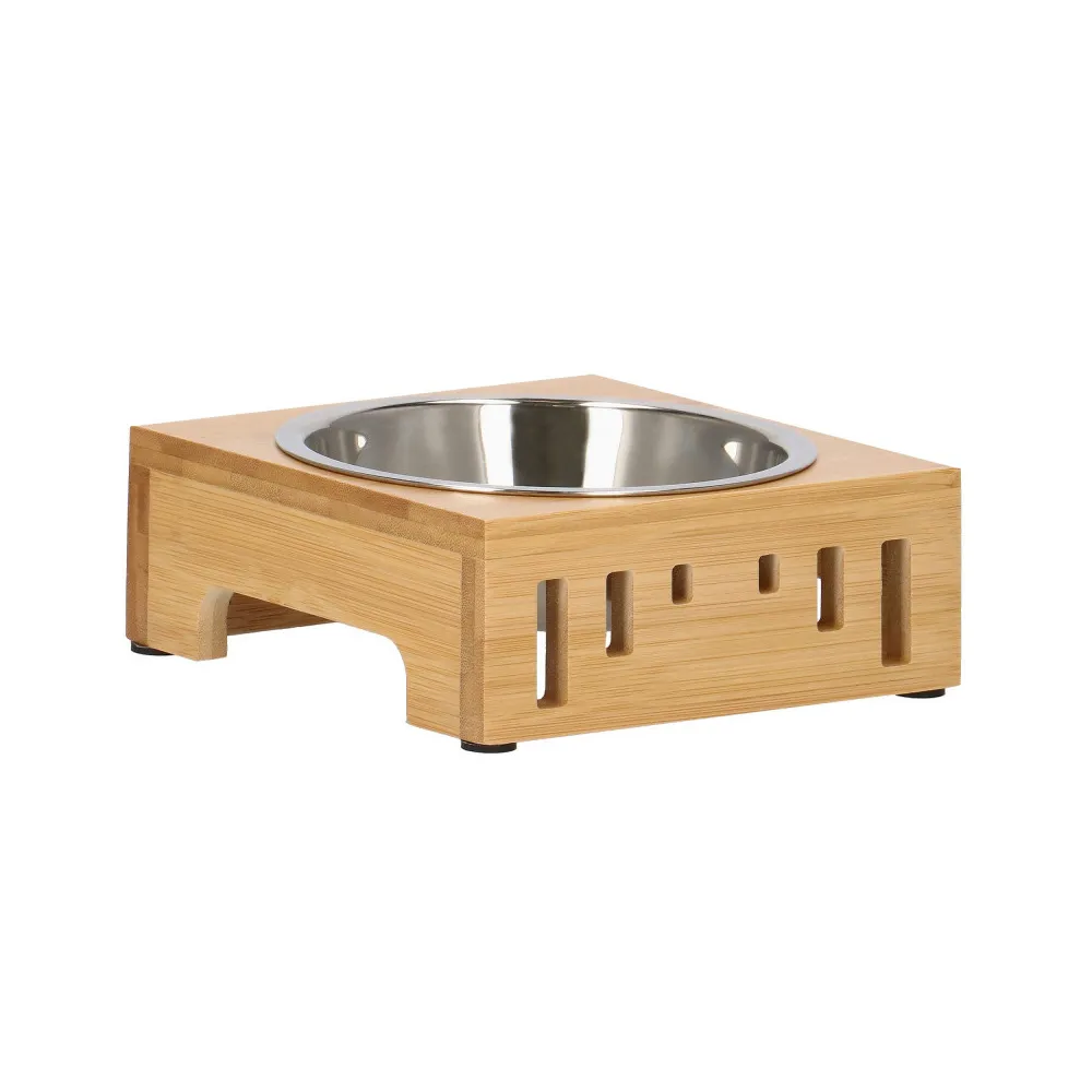 Nerezová miska v bambusovom stojane . Elegantný a jedinečný vzhľad. Odolný, netoxický a trvanlivý materiál. Stabilná základňa, ľahká údržba. Vhodné pre psy, mačky a menšie domáce zvieratá.