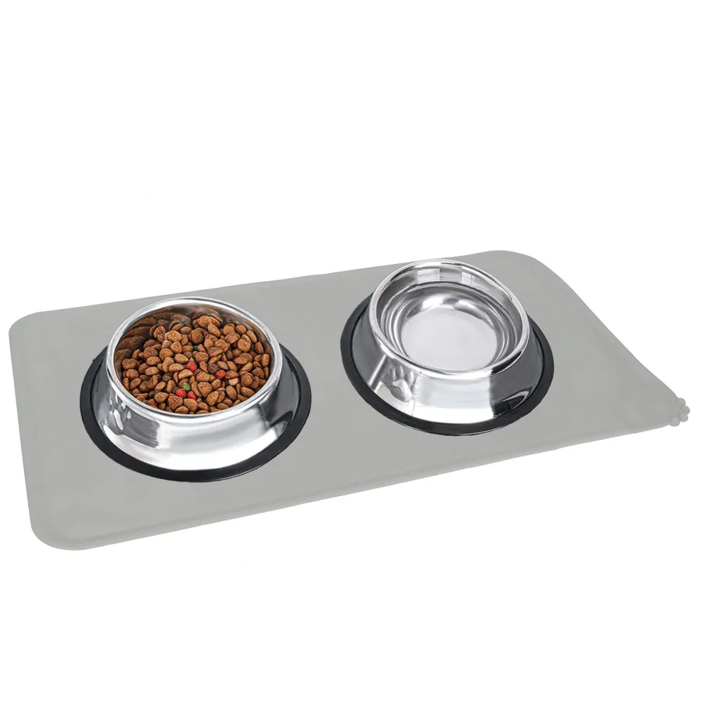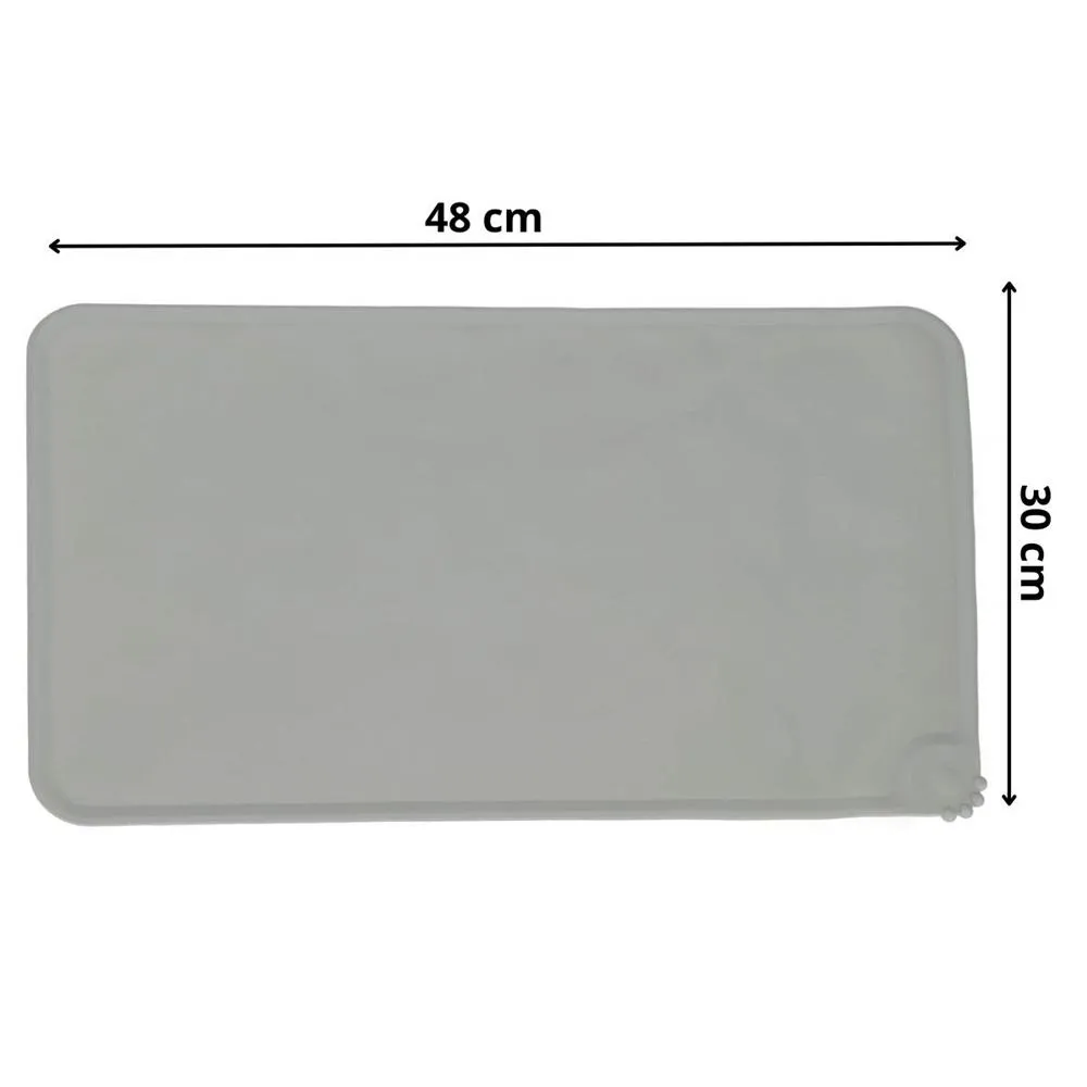 Protišmyková podložka pod misky s labkou 48x30 cm SPRINGOS PA1060 šedá je praktickým doplnkom pre každého majiteľa domácich maznáčikov, ktorý chce udržať svoje okolie čisté a chrániť podlahu pred poškodením.