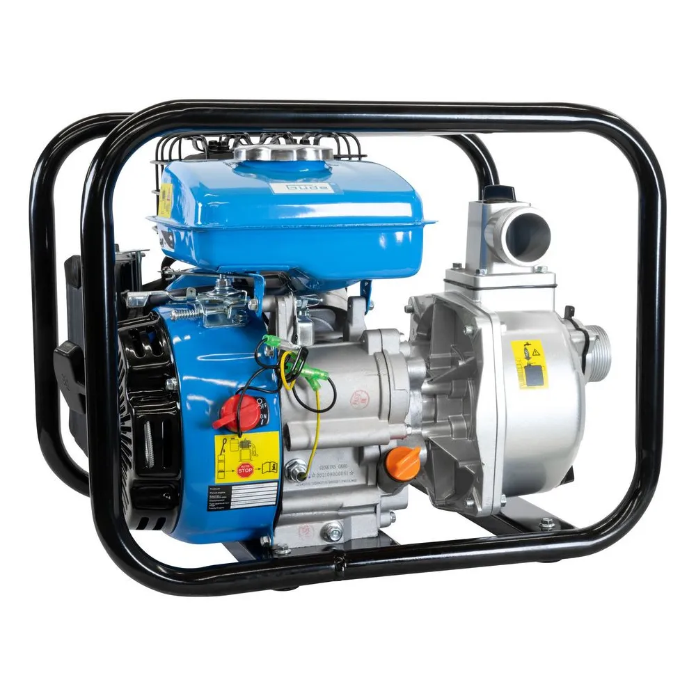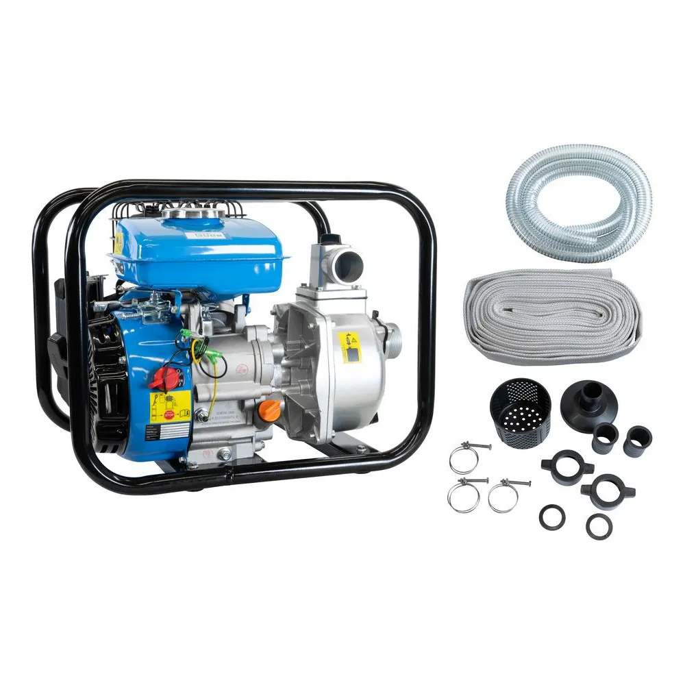 Čerpadlo telesa z tlakovo liateho hliníka, mechanické tesnenie, odvzdušňovaciu a vypúšťaciu skrutku, obežné koleso z tlakovo liateho hliníka. Rukoväť na prenášanie, hlavný vypínač, ochrana pri nízkej hladine oleja, reverzný štartér, 2 spojky na hadicu s hadicovými svorkami, sací kôš. Vrátane sady prípojných adaptérov, 4metrové sacie hadice, 10metrové výstupné hadice. Na prečerpávanie čistej alebo mierne znečistenej vody, pre oblasti bez elektriny, na zavlažovanie polí, dodávka vody na stavbu, do záhrady, núdzové odčerpávanie vody.