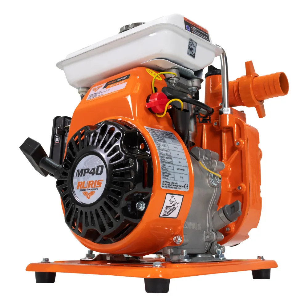 Motorové čerpadlo na zavlažovanie, kompaktné a ľahké. Čerpadlo je samonasávacie bez toho, aby sa naplnil celý stĺpec hadice, takže dodávka vody je okamžitá, s minimálnou námahou. Spotreba paliva je nízka, približne 0,7 l benzínu/h pri množstve 20 m3/h prečerpanej vody. Motorové čerpadlo RURIS MP40 zaručuje energetickú nezávislosť so schopnosťou rýchlo preniesť veľké objemy vody. Čerpadlo je kompaktné a váži iba 14 kg, čo uľahčuje jeho prepravu. Nevyžaduje špeciálne prepravné podmienky.