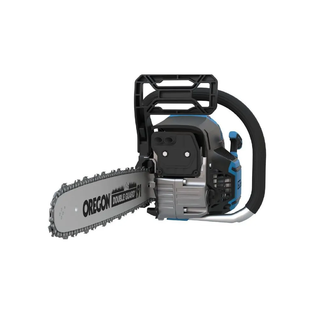 Výkonná benzínová reťazová píla na náročné použitie pri spracovaní palivového dreva a na výrub stromov. Vysoko účinný systém zabraňujúci vibráciám. Systém štartovania pomocou pružiny. S čerpadlom Primer a sýtičom. Kovový doraz, obojstranné uloženie kľukového hriadeľa. Prístup k vzduchovému filtru a zapaľovacej sviečke bez použitia náradia. Vrátane nádoby na miešanie paliva. Ochrana vodiacej lišty a reťaze. Súprava náradia s praktickou taškou na náradie.