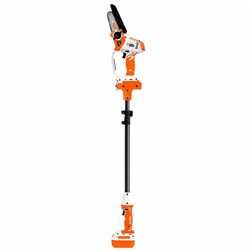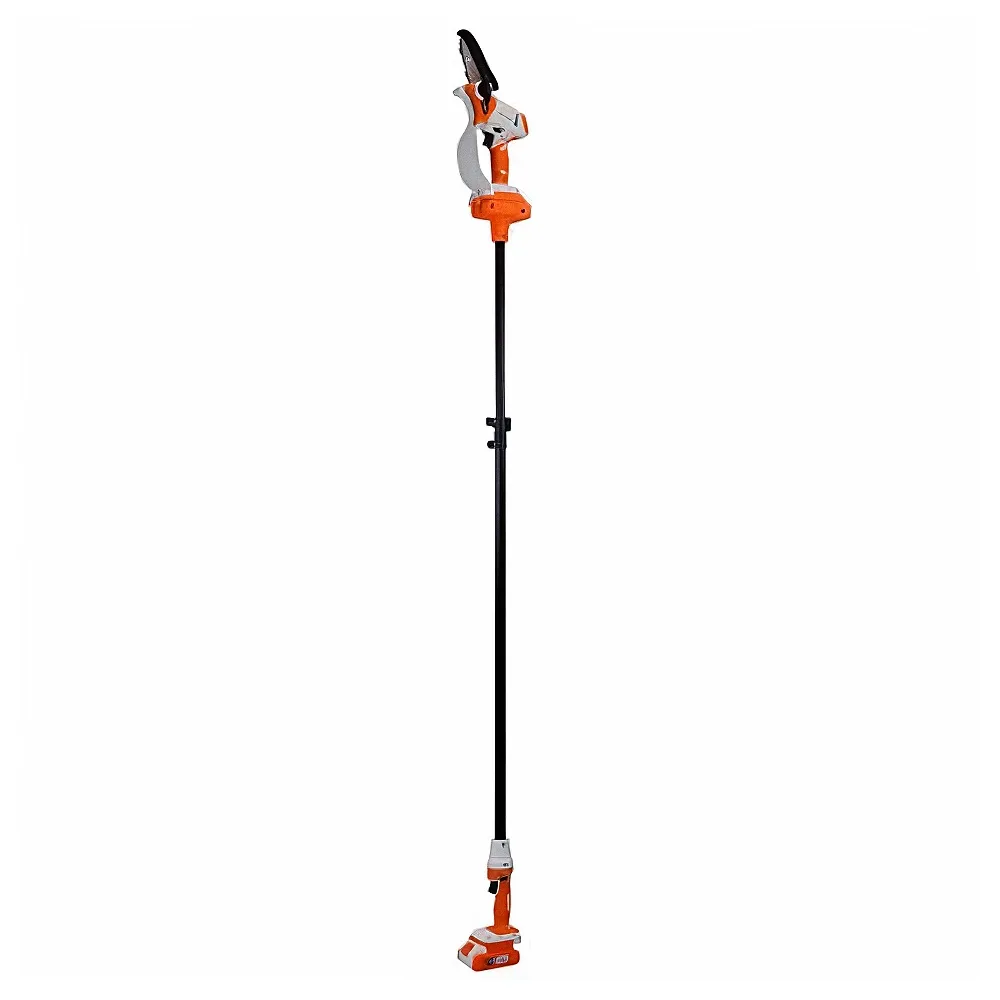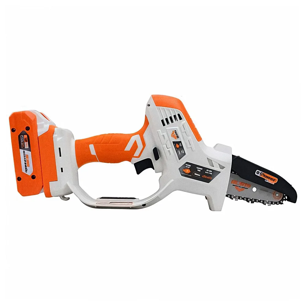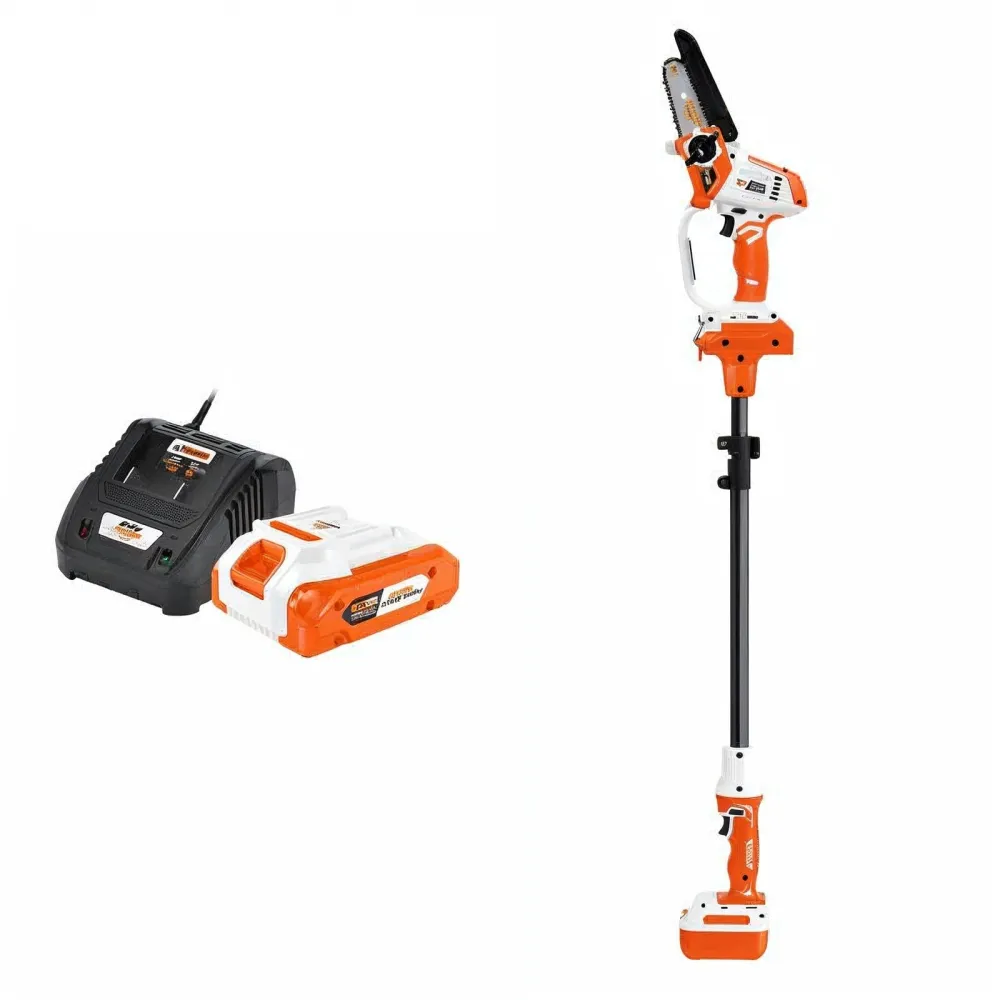 Akumulátorová teleskopická reťazová píla RURIS 1424 Power Alfa UP je vybavená komutátorovým elektromotorom a napájaná je 20 V Li-Ion akumulátorom s kapacitou 4 Ah zaisťujúcim vyšší výkon. Vďaka tomu má celkový výkon 80 Wh, takže dokáže rezať aj tvrdé a hrubé drevo. Set vrátane akumulárora a nabíjačky.