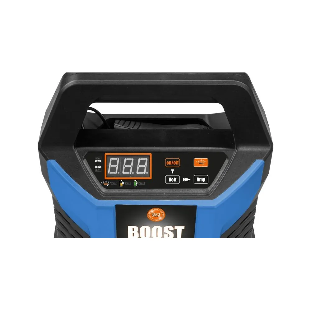 Invertorová technológia pre efektívne využitie energie. Procesorom riadená technológia inteligentného nabíjania, šesťstupňový proces nabíjania šetriaci batériu. Pre všetky bežné 12 V batérie. Funkcia BOOST 15 A-300 sekúnd na pomoc pri štartovaní. Možnosť priameho nabíjania batérie pripojenej vo vozidle. Automatické vypnutie nabíjania / prechod do režimu udržiavacieho nabíjania. Regulácia teploty počas nabíjania, ochrana proti prepólovaniu a skratu, LED displej, plne izolované svorky batérie. Pripojenie zapaľovača cigariet 12 V. Vhodné pre batérie PB - olovená batéria (i MF), GEL - gélová batéria, AGM - prietoková batéria (start-stop automat.), WET - mokrá batéria.