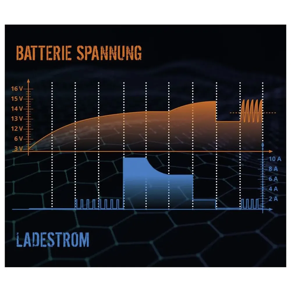 Automatická invertorová nabíjačka batérií 12V/6V-4A je vhodná pre všetky bežné typy autobatérií 6V a 12V. Obsluha je jednoduchá a citlivá elektronika vozidla je dobre chránená invertorovou technológiou. Vďaka plne izolovaným svorkám batérie je pripojenie nabíjačky ľahké a bezpečné. Praktický LCD displej vám na prvý pohľad zobrazí všetky dôležité informácie. Batéria je chránená funkciou udržiavacieho nabíjania, čo znamená, že stav nabitia je trvalo optimalizovaný. Má tiež ochranu proti prebitiu, skratu a prepólovaniu. Prístroj je vybavený rôznymi režimami, a tak pomocou špeciálneho obnovovacieho režimu dokáže pripraviť hlboko vybité batérie na opätovné použitie. Invertorová technológia pre efektívne využitie energie. Procesorom riadená technológia inteligentného nabíjania. 10-stupňové plne automatické nabíjanie šetriace batériu. Permanentné udržiavacie nabíjanie, možné priame nabíjanie batérie pripojenej vo vozidle. Ochrana proti prepólovaniu a skratu. Špeciálny obnovovací režim, obzvlášť pre hĺbkovo vybité batérie. Plne izolované svorky batérie, s praktickým uškom na zavesenie.