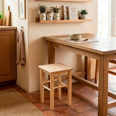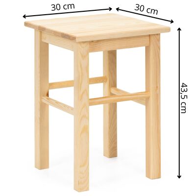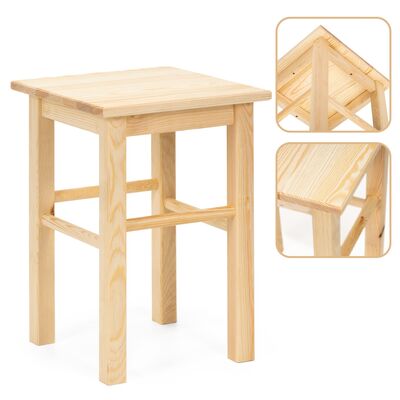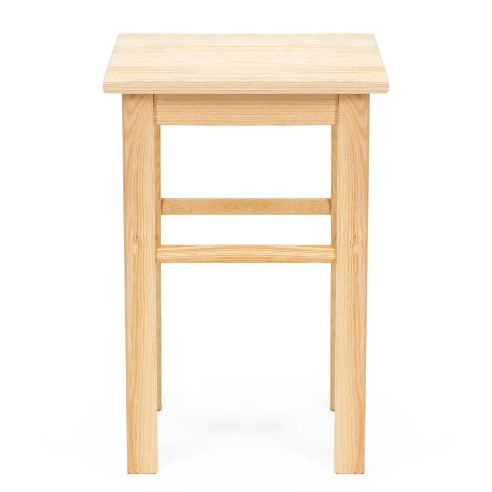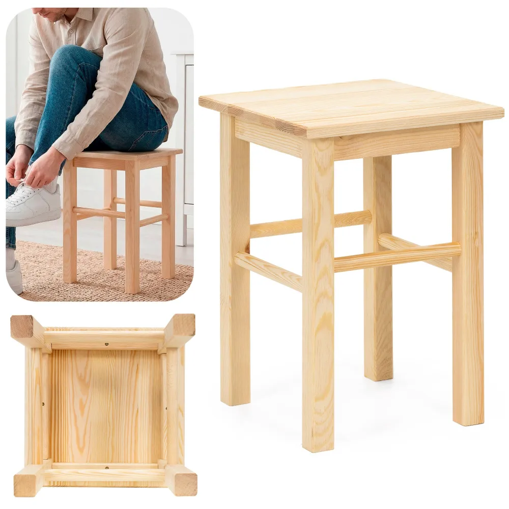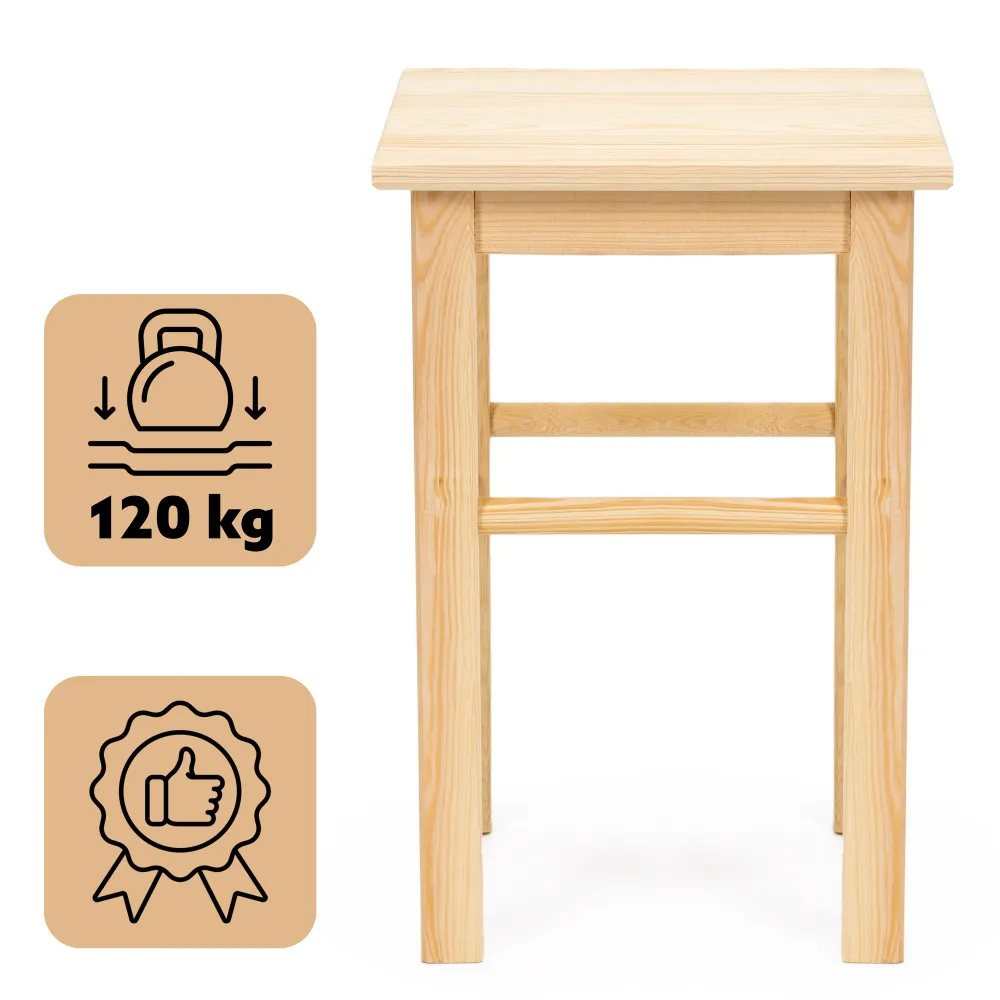 Drevená stolička so štvorcovým sedákom na každodenné použitie. Slúži na sedenie, odkladanie vecí alebo ako praktický pomocník v domácnosti. Ponúka stabilnú konštrukciu a pohodlný tvar sedadla. Vhodná do kuchyne, kúpeľne aj ďalších priestorov.