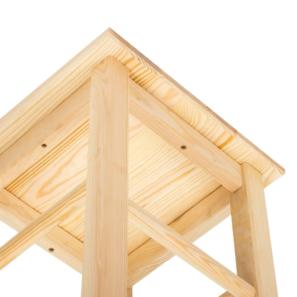 Stolička je vyrobená z kvalitného borovicového dreva , ktoré zaisťuje pevnosť a dlhú životnosť. Tvarovaný sedák poskytuje vyšší komfort pri sedení, zatiaľ čo stabilná konštrukcia zaručuje bezpečné používanie. Prírodný vzhľad ľahko zapadne do každého interiéru.