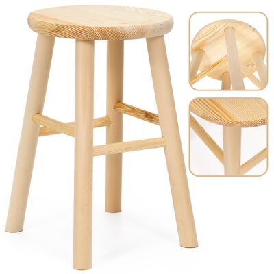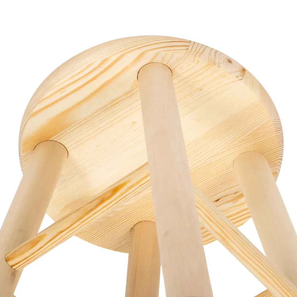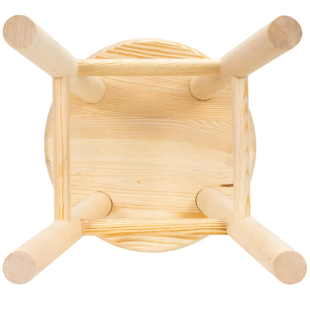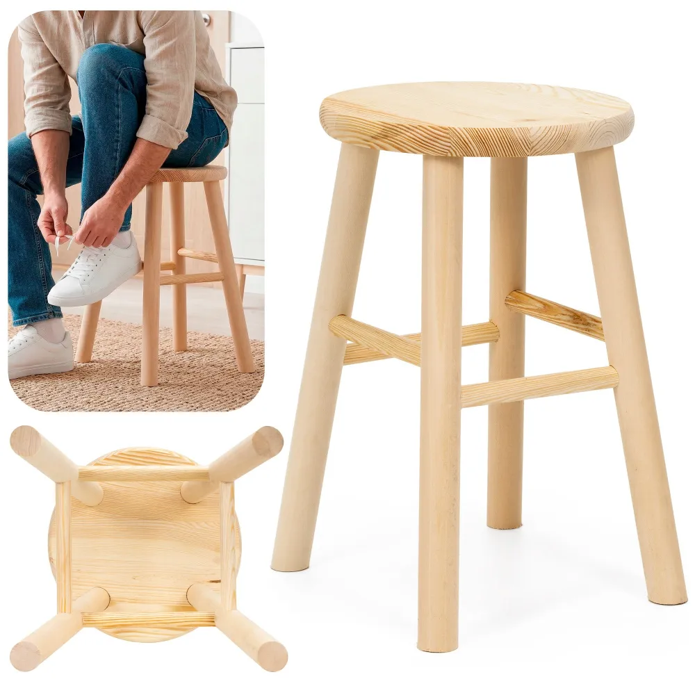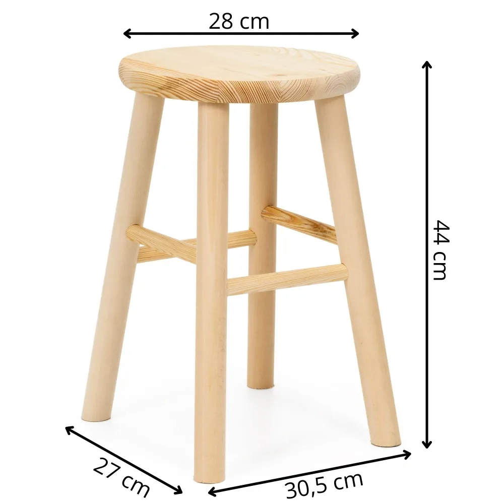 Drevená okrúhla stolička na každodenné použitie v domácnosti. Slúži na sedenie, odkladanie vecí alebo ako praktický pomocník. Ponúka pevnú konštrukciu a pohodlný tvar sedadla. Vhodná do kuchyne, kúpeľne aj ďalších priestorov.
