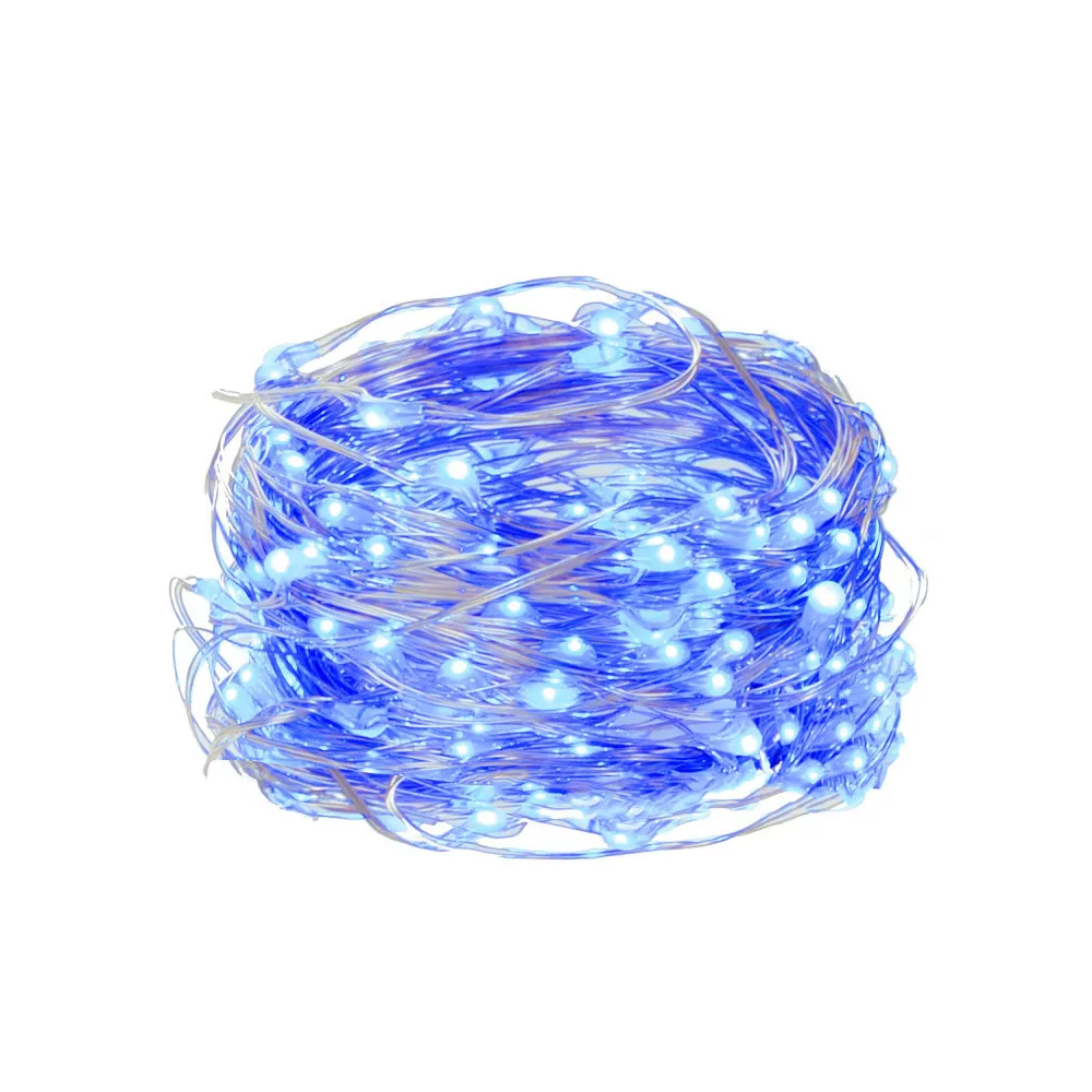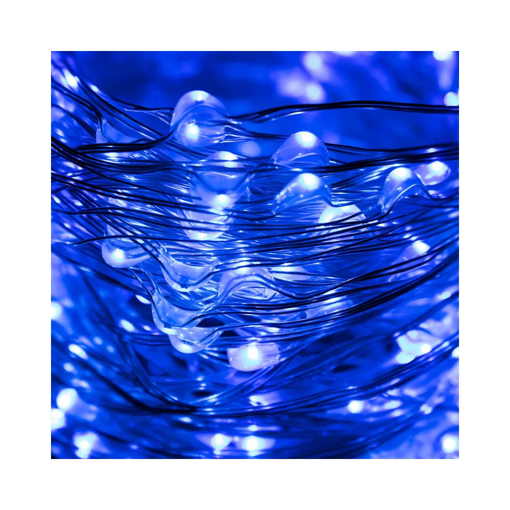 Ultratenká svetelná reťaz s programátorom a 8 svetelnými funkciami. Adaptér na bezpečné napätie, ultra úsporné nano led diódy, neviditeľný kábel. Vnútorné aj vonkajšie použitie, vodeodolné prevedenie, krytie IP44. Dĺžka svetelnej časti 48 m, napájací kábel 3 m. Farba modrá, 480 ľad.