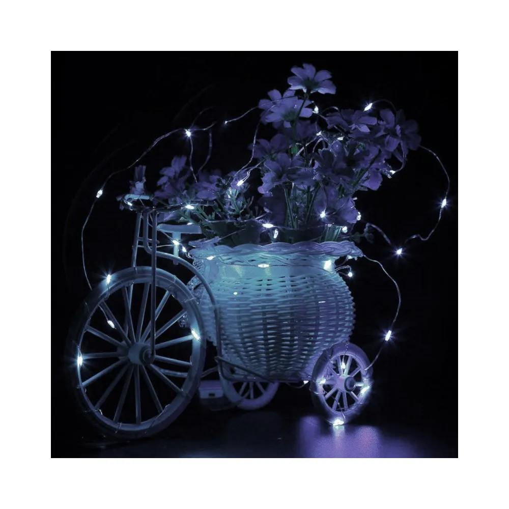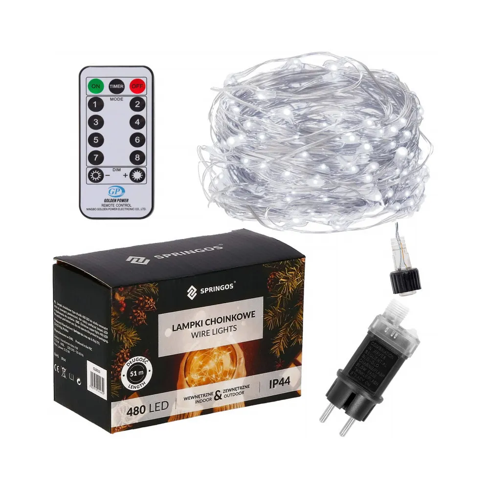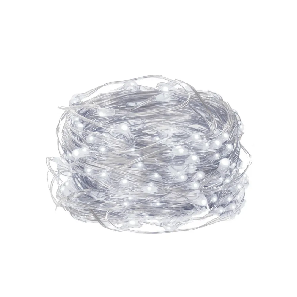 Ultratenká svetelná reťaz s programátorom, 8 svetelnými funkciami a diaľkovým ovládačom. Adaptér na bezpečné napätie, ultra úsporné nano led diódy, neviditeľný kábel. Vnútorné aj vonkajšie použitie, vodeodolné prevedenie, krytie IP44. Dĺžka svetelnej časti 48 m, napájací kábel 3 m. Farba studená biela, 480 ľad.
