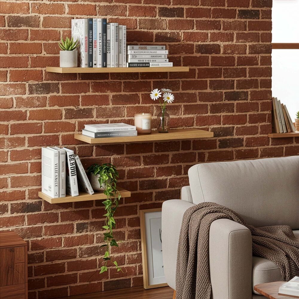 Prehľadné usporiadanie a príjemná atmosféra idú ruka v ruke s touto sadou troch políc v rôznych dĺžkach. Umožňujú vytvoriť vlastnú kompozíciu na vystavenie dekorácií, kníh i drobných predmetov. Kombinácia prírodného vzhľadu a jednoduchej konštrukcie pôsobí nadčasovo a ľahko sa prispôsobí rôznym štýlom interiéru, takže priestor pôsobí pokojne a vyvážene.