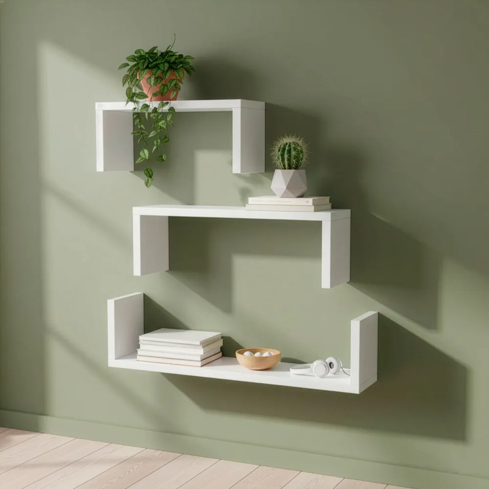 Súprava troch nástenných políc ponúka príjemný spôsob, ako vystaviť dekorácie, knihy i drobné predmety a zároveň udržať priestor prehľadný. Rôzne veľkosti umožňujú usporiadanie prispôsobiť priestoru aj osobnému vkusu. Svetlé prevedenie pôsobí jemne a pokojne, ľahko zapadne do interiéru a pomáha vytvoriť útulnú a vyváženú atmosféru.