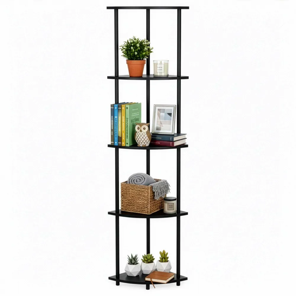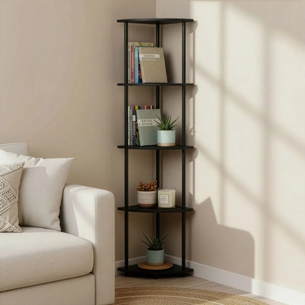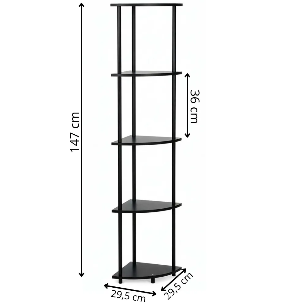 Elegantné riešenie na využitie nevyužitého kúta v interiéri. Štíhle prevedenie ponúka päť políc vhodných na dekorácie, knihy, rastliny i drobnosti každodennej potreby. Stabilná konštrukcia zaisťuje isté postavenie, zatiaľ čo tmavé prevedenie pôsobí moderne a ľahko sa kombinuje s rôznymi štýlmi zariadenia. Vhodná do spálne, obývacej izby aj pracovného kúta.