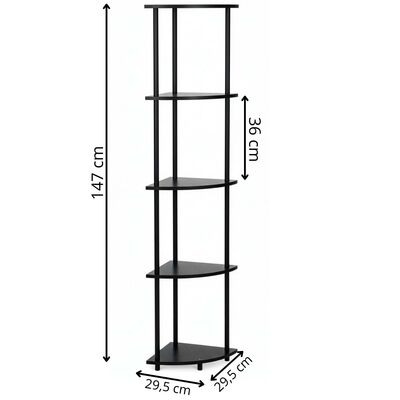 Elegantné riešenie na využitie nevyužitého kúta v interiéri. Štíhle prevedenie ponúka päť políc vhodných na dekorácie, knihy, rastliny i drobnosti každodennej potreby. Stabilná konštrukcia zaisťuje isté postavenie, zatiaľ čo tmavé prevedenie pôsobí moderne a ľahko sa kombinuje s rôznymi štýlmi zariadenia. Vhodná do spálne, obývacej izby aj pracovného kúta