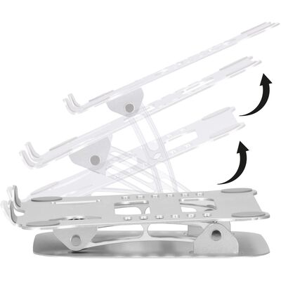 Stojan na notebook SPRINGOS LAPTEQ strieborný výrazne zlepšuje ergonómiu práce s notebookom tým, že umožňuje umiestniť zariadenie do správnej výšky a uhla, čo znižuje zaťaženie krčnej chrbtice a zlepšuje celkové pohodlie počas dlhých pracovných hodín. Vďaka veľkým vetracím otvorom aktívne prispieva k lepšiemu chladeniu notebooku a tým zabraňuje jeho prehrievaniu, čo predlžuje životnosť zariadenia a zaisťuje stabilný výkon. Stojan je navrhnutý tak, aby bol maximálne praktický - rýchle a jednoduché zloženie a rozloženie umožňuje okamžité použitie alebo rýchle uloženie.