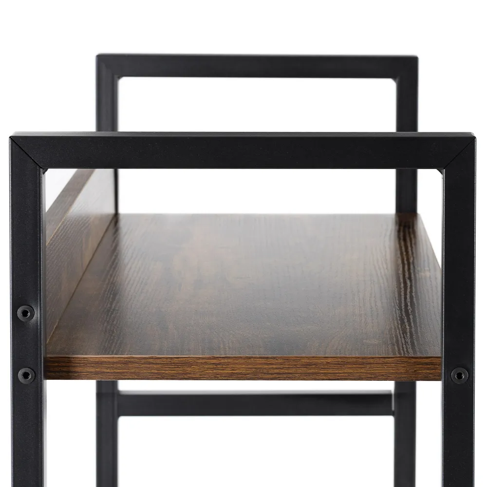 Praktický a vkusný regál, ktorý spája poriadok s útulnou atmosférou. Štyri otvorené police poskytujú dostatok priestoru pre knihy, dekorácie aj každodenné drobnosti. Pevná kovová konštrukcia zaisťuje stabilitu a vysokú nosnosť, zatiaľ čo kombinácia tmavého dreva a čierneho rámu pôsobí nadčasovo a prirodzene zapadne do rôznych typov interiéru.