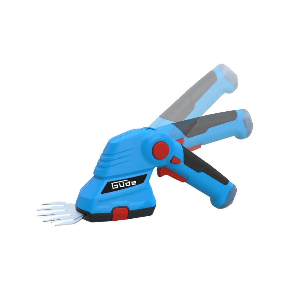 Akumulátorový záhradnícky set s násadou na strihanie trávy, násadou na strihanie živých plotov a kríkov, integrovaným akumulátorom 7,2 V / 1,5 Ah, vrátane nabíjačky. Trojpolohová sklopná rukoväť, rýchla výmena nožníc na trávu alebo nožníc na živé ploty/kriky bez použitia náradia.