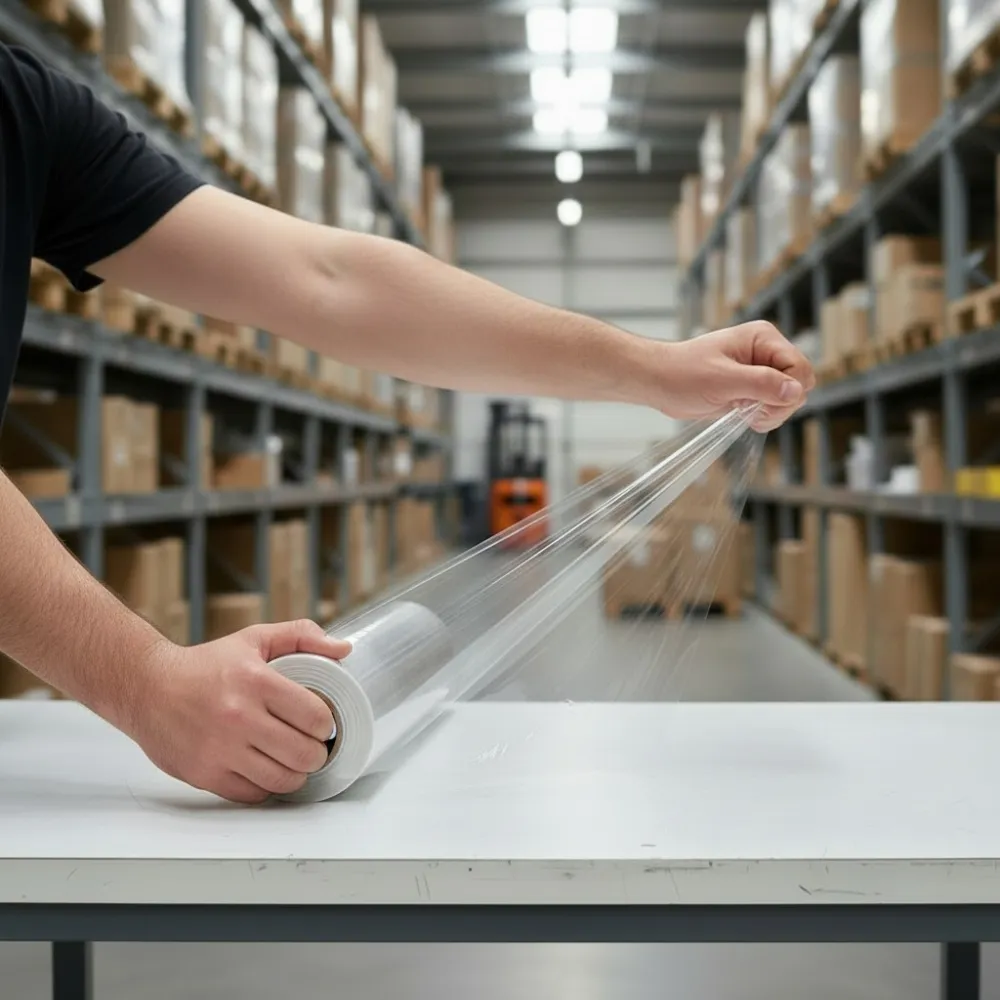 Fólia poskytuje ochranu proti prachu, vlhkosti aj mechanickému poškodeniu počas manipulácie a prepravy. Vďaka nízkej hmotnosti a ľahkému odvíjaniu je ideálny pre ručné balenie bez zbytočnej námahy. Vyrobená zo 100% recyklovateľného polyetylénu , je šetrnejšia k životnému prostrediu a zároveň vhodná na fixáciu kartónov na paletách i jednotlivých zásielok.