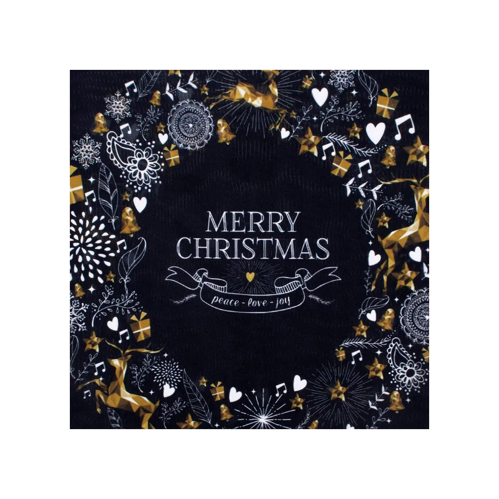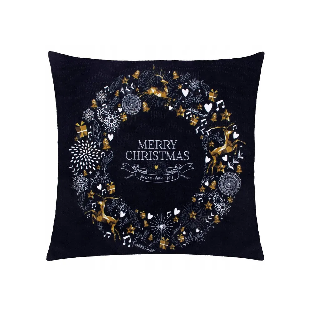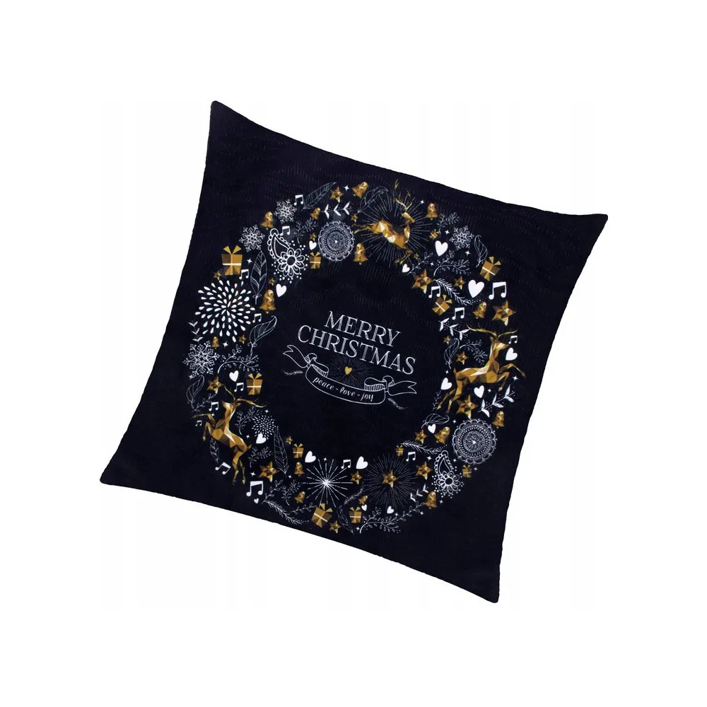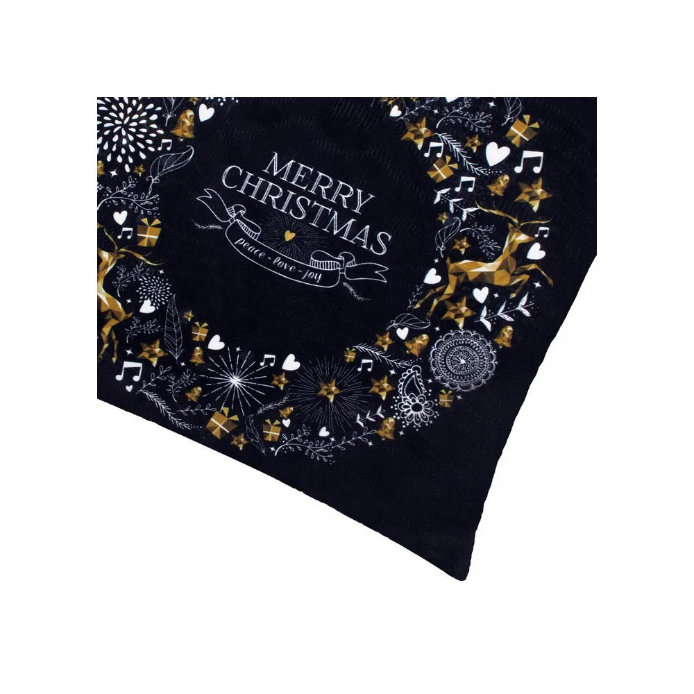 Obojstranný vianočný poťah na vankúš s rozmermi 40x40 cm. Nádherný vzor zlatej vločky s nápisom Merry Christmas. Praktický bočný zips, na...