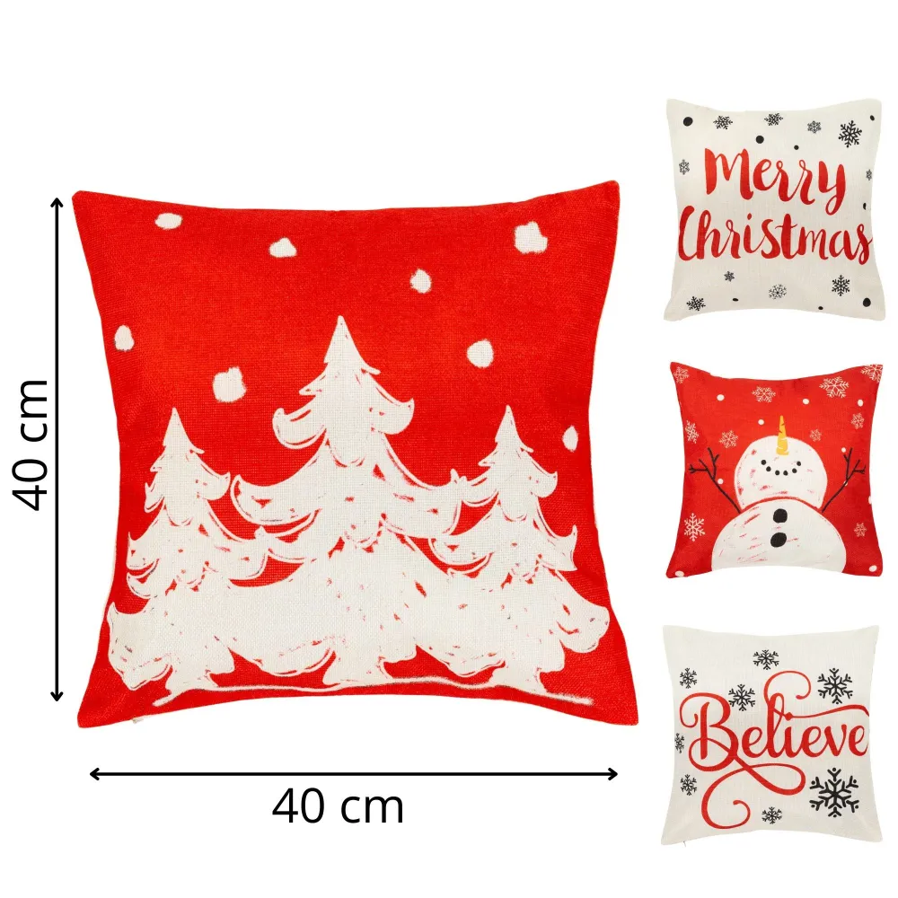 Vianočné obliečky na vankúšiky 40x40 cm, sada 4ks, bielo-červené