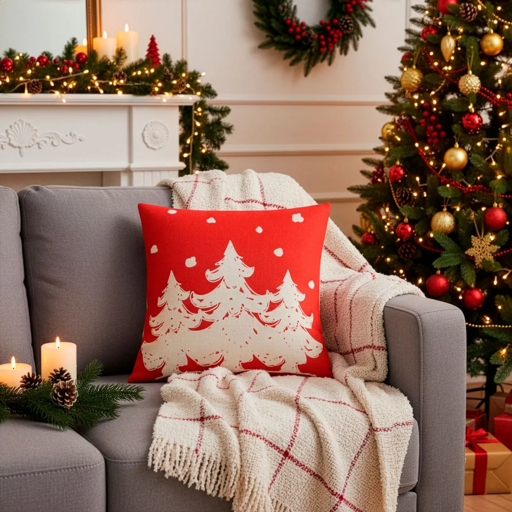 Vianočné obliečky na vankúšiky červeno-biele vytvoria v domácnosti príjemnú sviatočnú atmosféru vďaka veselým motívom zasnežených stromčekov, snehuliaka a typickým vianočným nápisom. Kombinácia červenej, bielej a čiernej farby pôsobí hrejivo a dokonale zapadá do tradičnej aj modernej vianočnej výzdoby. Obliečky sú vyrobené z kvalitného 100% polyesteru, ktorý je mäkký, odolný a ľahko sa udržuje , čo je ideálne pre každodenné používanie počas zimných sviatkov. Výrazné vianočné motívy okamžite rozžiaria interiér a dodajú mu kúzelnú atmosféru.