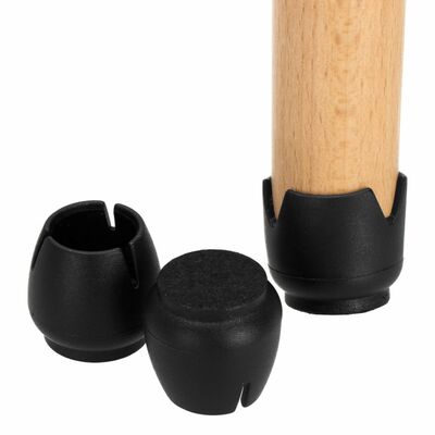 Plastové kryty na stoličky alebo iný nábytok. Skvelá alternatíva k plsteným podložkám. Bez potreby lepidla. Návleky sú v čiernej farbe, trvanlivé, pružné a odolné proti oderu. Vodotesné a vodeodolné. Opakovane použiteľný výrobok, výborne tlmí zvuky. Dokonale chráni podlahu proti poškriabaniu.