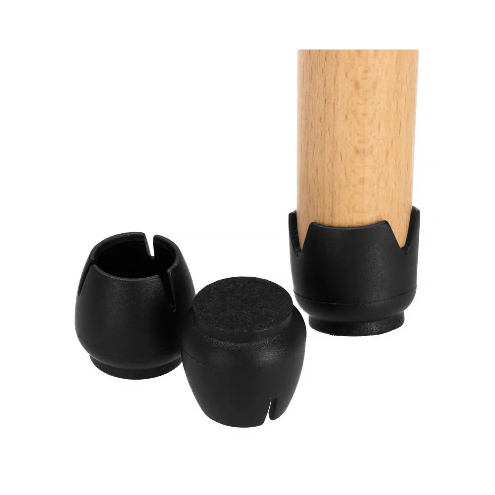 Plastové kryty na stoličky alebo iný nábytok. Skvelá alternatíva k plsteným podložkám. Bez potreby lepidla. Návleky sú v čiernej farbe, trvanlivé, pružné a odolné proti oderu. Vodotesné a vodeodolné. Opakovane použiteľný výrobok, výborne tlmí zvuky. Dokonale chráni podlahu proti poškriabaniu.