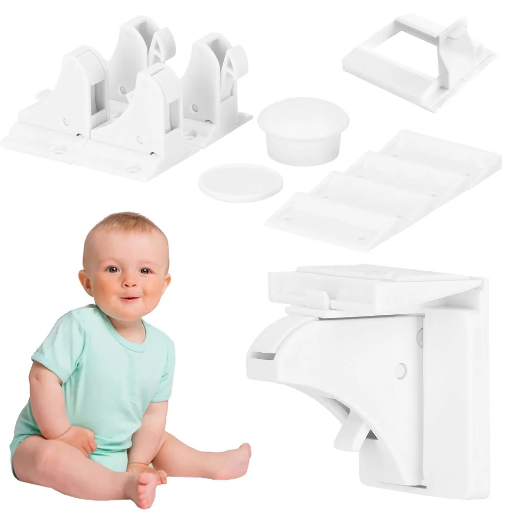 Sada 4ks bezpečnostných zámkov na ochranu vašich detí. Jednoduchá inštalácia pomocou obojstrannej pásky. Univerzálne použitie, široká škála aplikácií. Vyrobené z odolných a pevných materiálov, dlhá životnosť. Skvelá prevencia úrazu. Vhodné na skrine, zásuvky, vitríny, komody alebo chladničku.