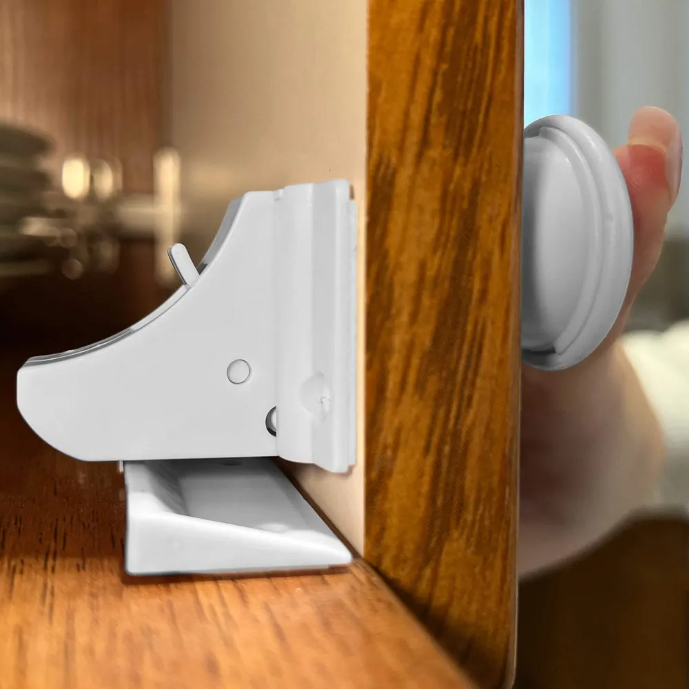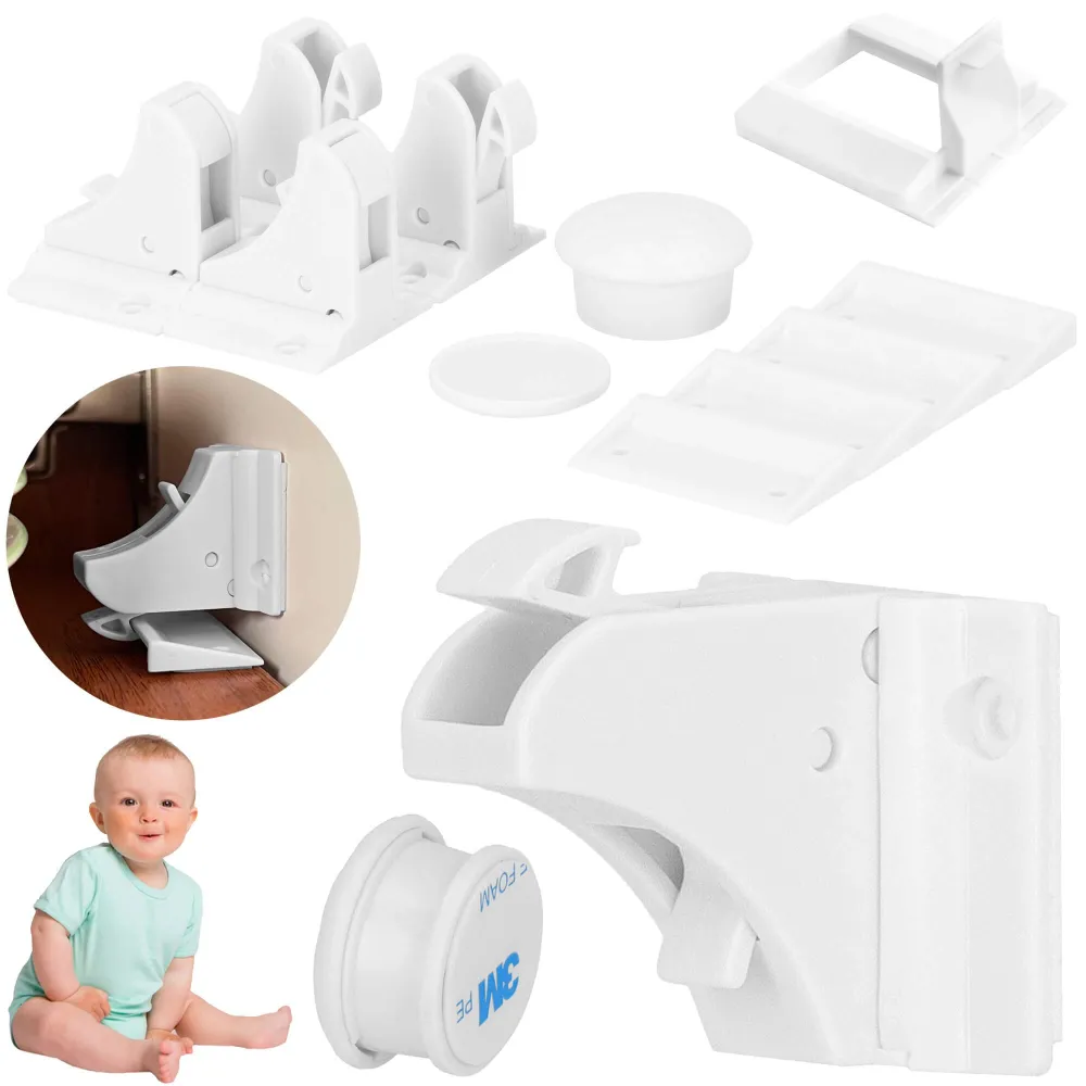 Sada 4ks bezpečnostných zámkov na ochranu vašich detí. Jednoduchá inštalácia pomocou obojstrannej pásky. Univerzálne použitie, široká škála aplikácií. Vyrobené z odolných a pevných materiálov, dlhá životnosť. Skvelá prevencia úrazu. Vhodné na skrine, zásuvky, vitríny, komody alebo chladničku.