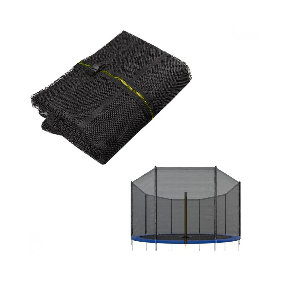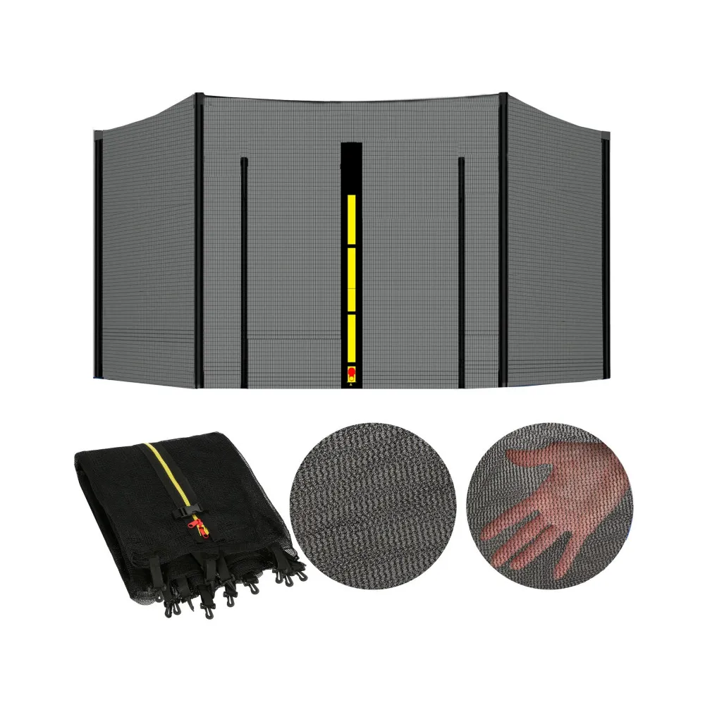 Vstupný otvor je zaistený zipsom a bezpečnostnými prackami proti nechcenému otvoreniu. Spodná strana je vybavená pružnými pásikmi s karabínkou pre ľahké upevnenie ku konštrukcii trampolíny.