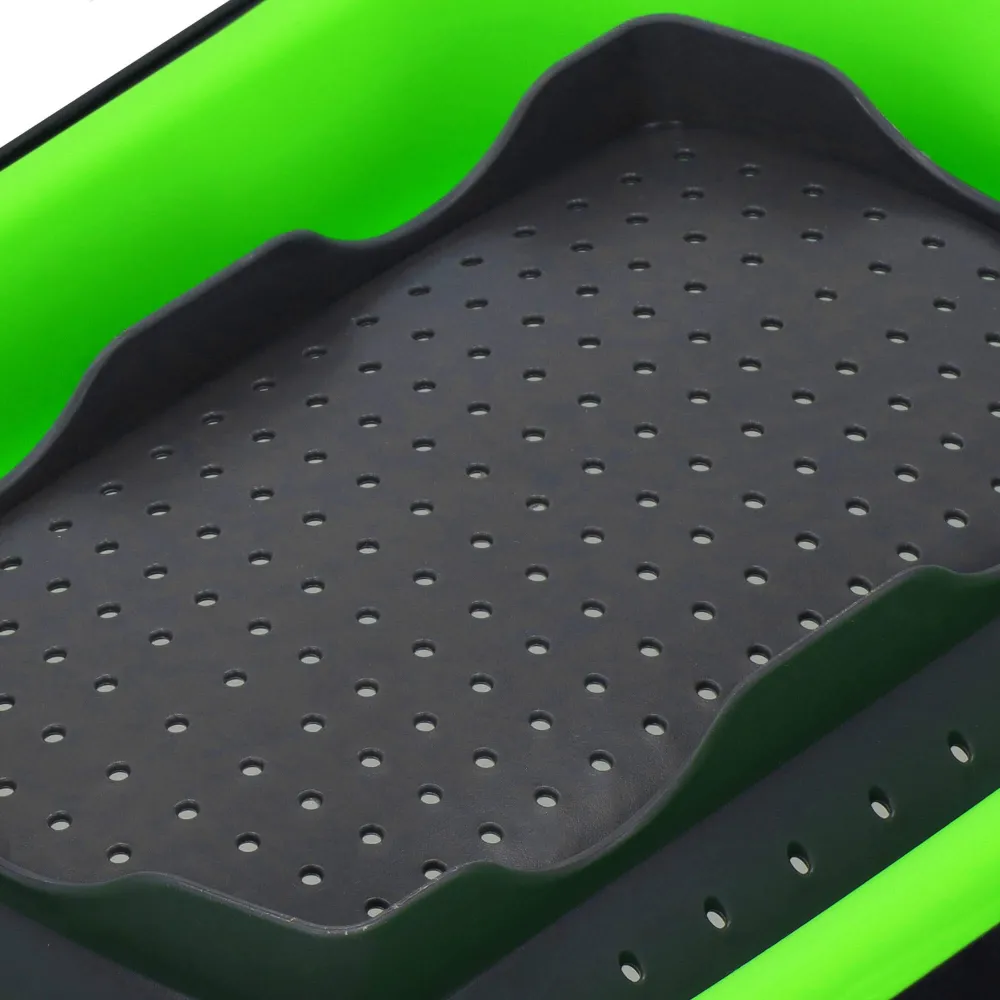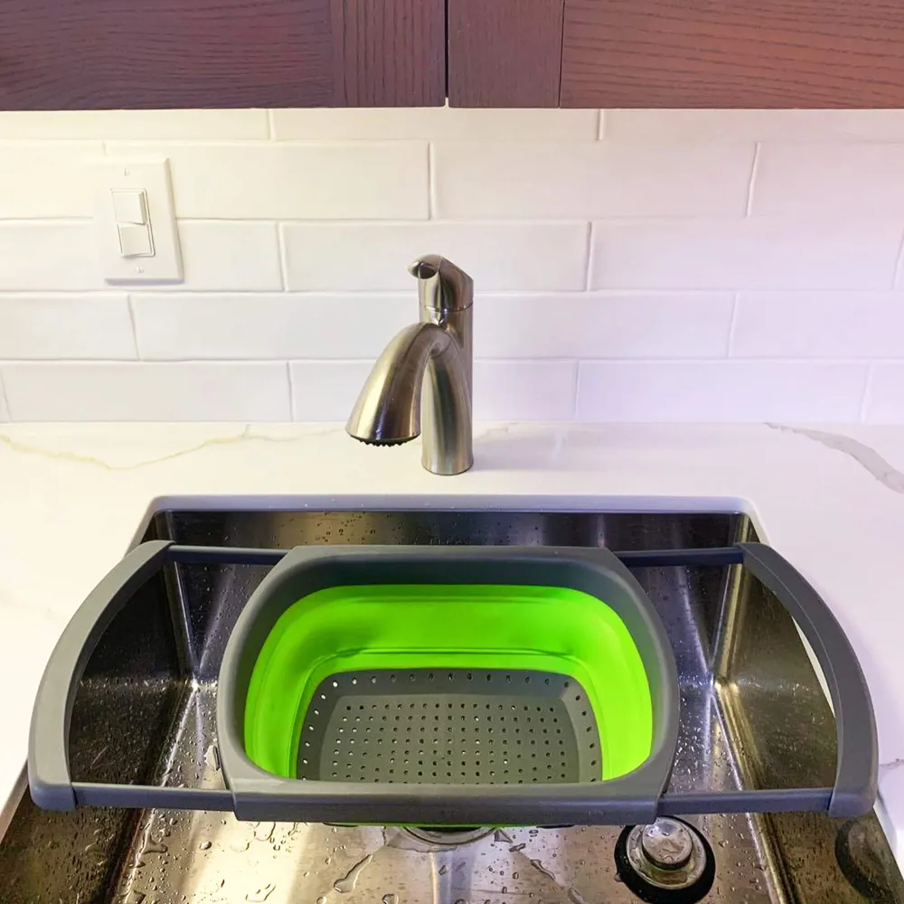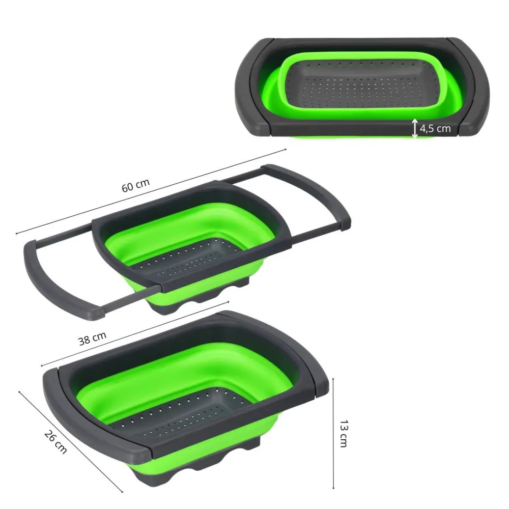 Vďaka svojej flexibilite a šikovnému dizajnu je nepostrádateľný v každej kuchyni , či už doma alebo vonku v prírode. Výborne poslúži pri oplachovaní ovocia, zeleniny alebo ako priestor na odkvapkávanie riadu. Elegantná šedo-zelená kombinácia navyše skvele zapadne do modernej domácnosti.