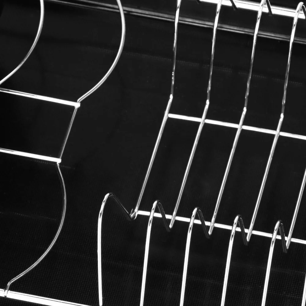 Jeho chrómovaná oceľová konštrukcia zaisťuje pevnosť a odolnosť, zatiaľ čo odnímateľný plastový podnos na zachytenie vody bráni vzniku neporiadku a udržuje okolitú plochu suchú. Súčasťou sú aj dve odnímateľné plastové priehradky na príbory , ktoré umožňujú ľahké oddelenie a usporiadanie menších kuchynských potrieb.