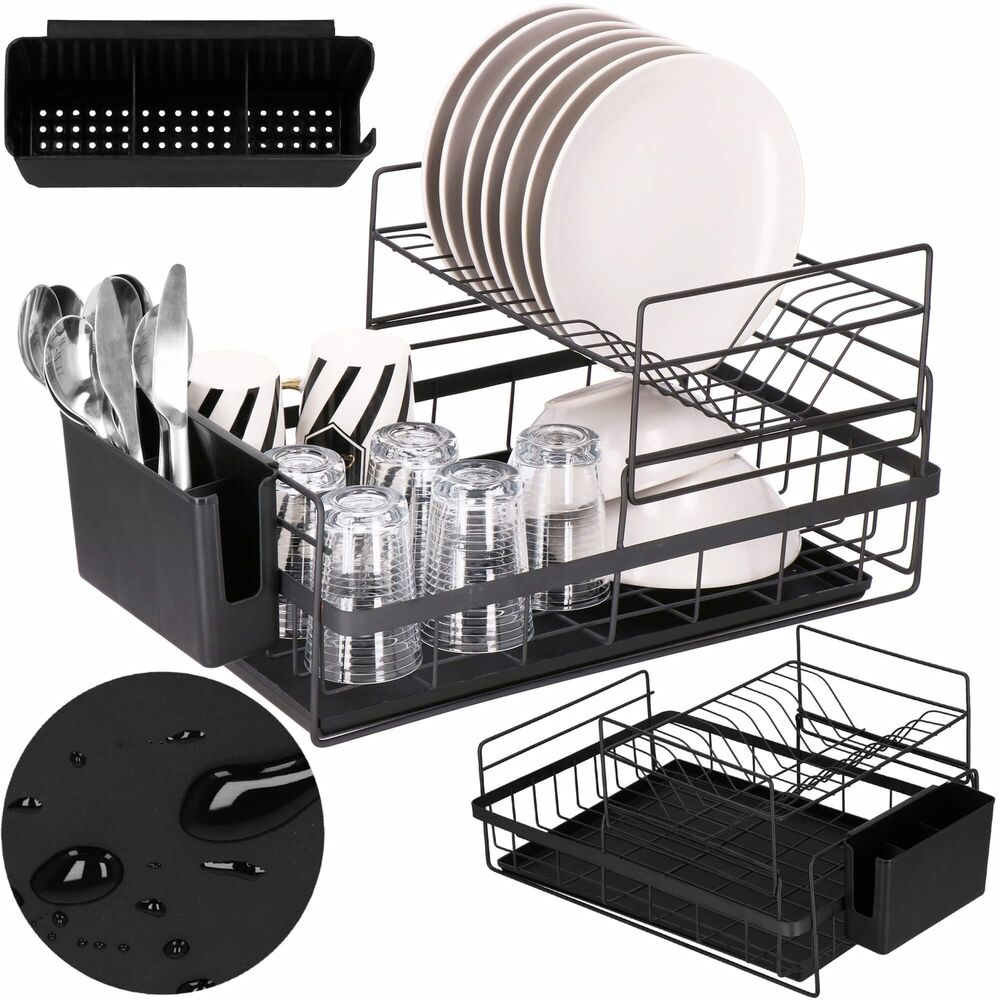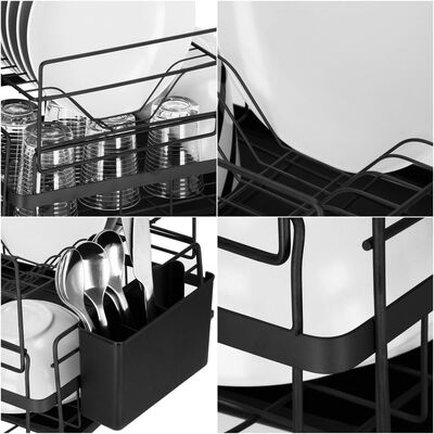 Vďaka dvojposchodovému prevedeniu ponúka dostatok priestoru pre taniere, misky, poháre i príbory, pričom využíva vertikálne usporiadanie na úsporu miesta. Konštrukcia z matnej ocele s čiernym práškovým nástrekom dodáva moderný vzhľad a zaisťuje odolnosť proti vlhkosti a korózii. Nerezový odkvapkávač s podnosom je doplnený o odnímateľný plastový podnos , ktorý zachytáva prebytočnú vodu a uľahčuje čistenie.