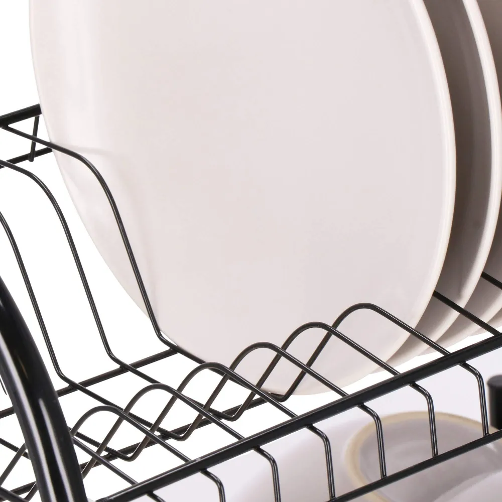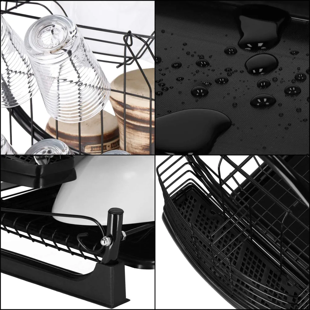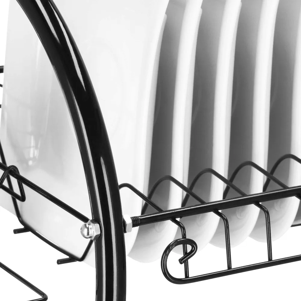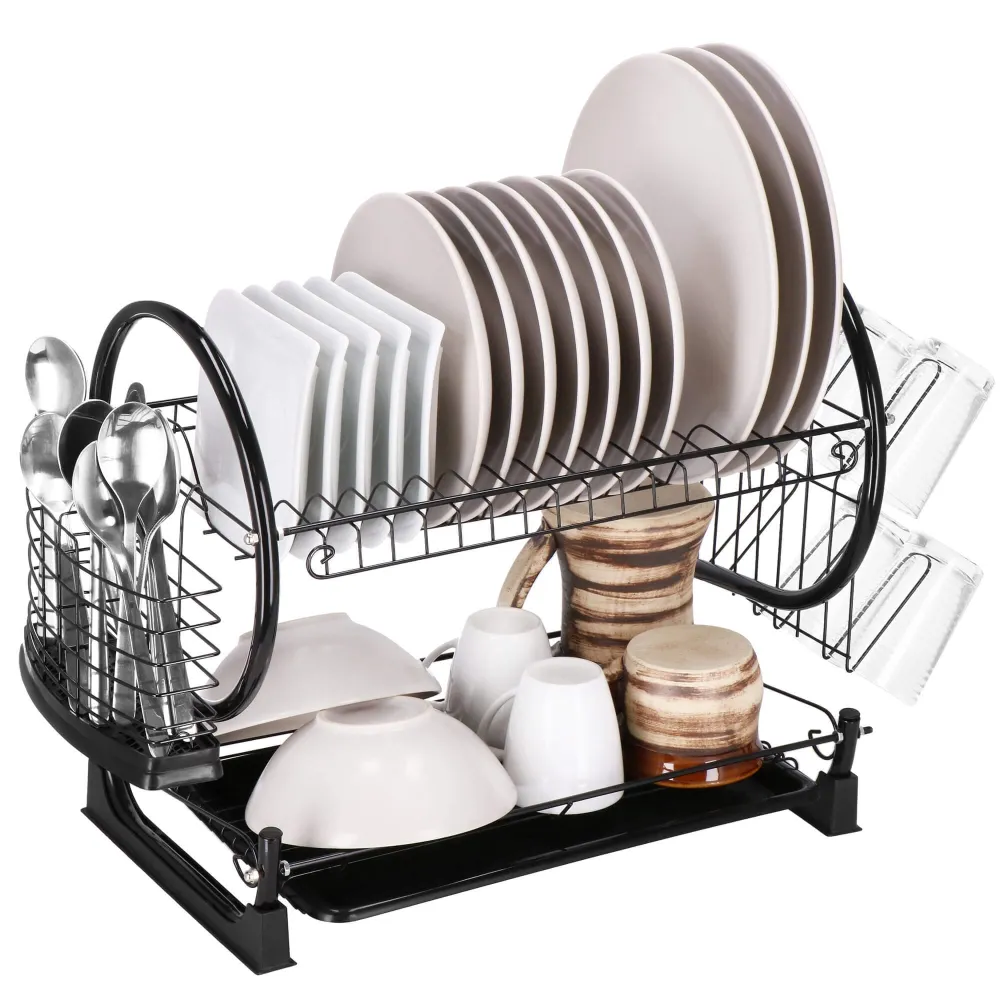 Vďaka dvojposchodovému prevedeniu ponúka dostatok priestoru pre taniere, misky, poháre i príbory, pričom využíva vertikálne usporiadanie na úsporu miesta. Konštrukcia z lesklej ocele s čiernym práškovým nástrekom dodáva moderný vzhľad a zaisťuje odolnosť proti vlhkosti a korózii. Nerezový odkvapkávač s podnosom je doplnený o odnímateľný plastový podnos , ktorý zachytáva prebytočnú vodu a uľahčuje čistenie.