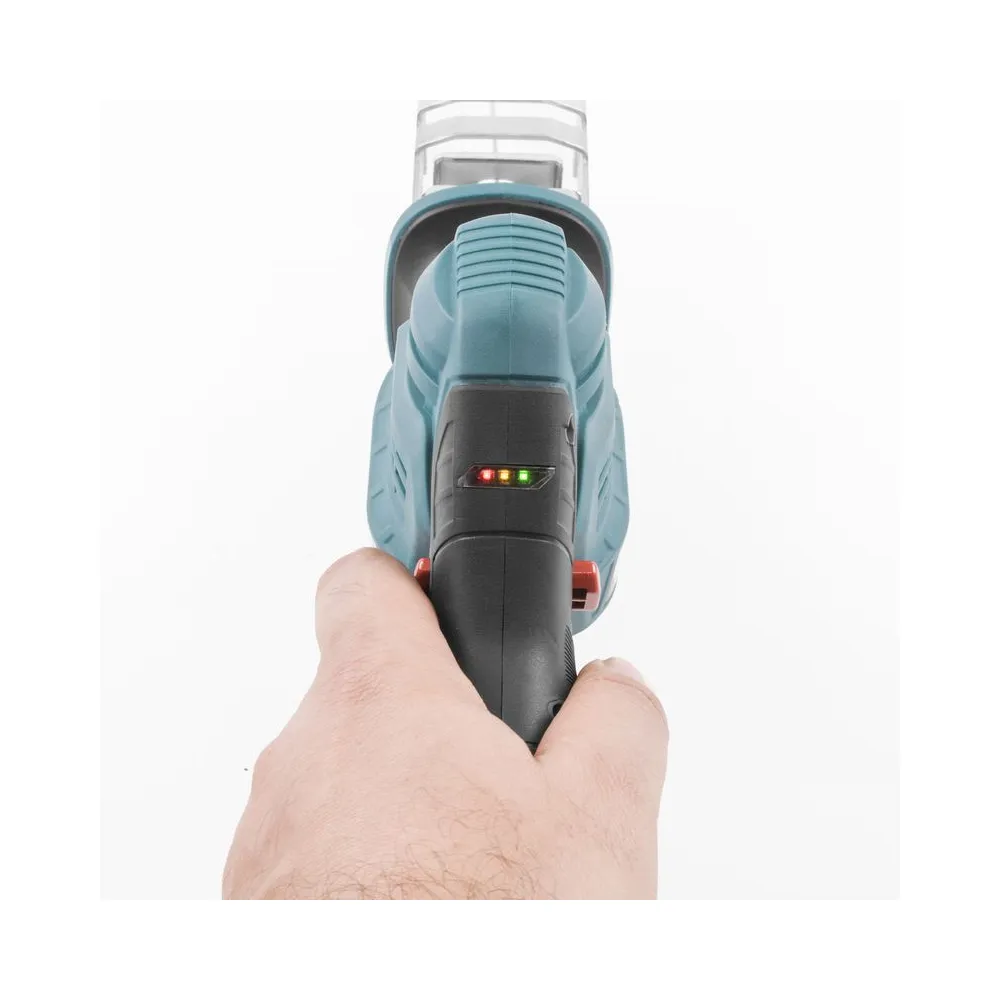 Akumulátorová univerzálna odvetvovacia píla s dobrým záberom vďaka výkonnému motoru, variabilná regulácia rýchlosti, signalizácia stavu nabitia, zúbkovaný strmeň na vetvy, rýchloupínacie skľučovadlo, kompatibilné s bežnými pílovými listami. Vrátane rýchlonabíjačky, batérie 2 Ah, pílového listu.