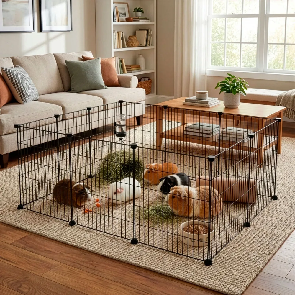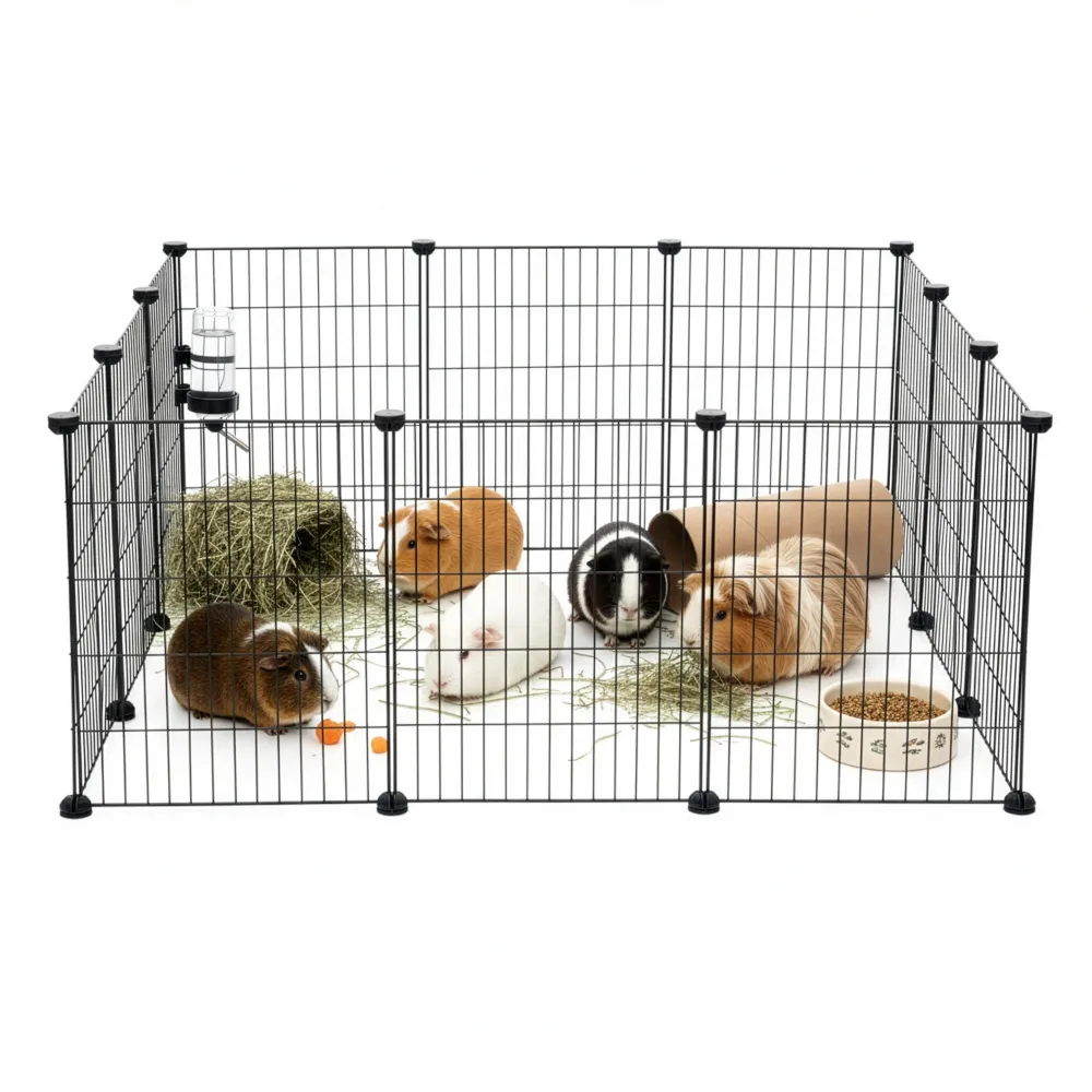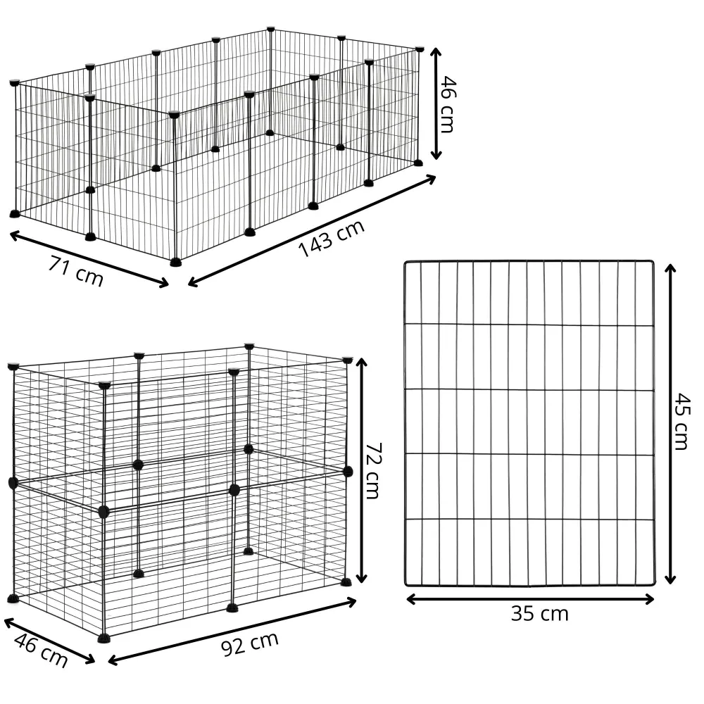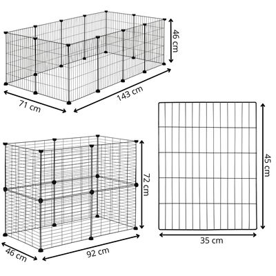 Skladacia ohrádka pre malé domáce zvieratá a hlodavce poskytuje bezpečný a prehľadný priestor na pohyb i odpočinok. Vytvorte otvorený a priestranný výbeh s týmto plotom, kde sa váš milý priateľ môže baviť a cítiť sa pohodlne. Odolný kovový materiál a pevné pletivo zaisťujú stabilitu a dlhú životnosť. Jednoduché zloženie a variabilné usporiadanie podľa potreby. Rozmery jedného panelu: 25x45 cm (ŠxV).