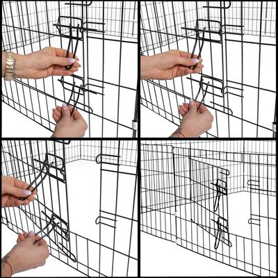 Jednou z hlavných výhod tejto ohrádky je rýchla a jednoduchá montáž aj demontáž bez nutnosti použitia náradia. Konštrukcia je navrhnutá tak, aby bolo možné výbeh zložiť do kompaktnej veľkosti pre ľahké skladovanie a prepravu. To oceníte nielen doma, ale aj na cestách alebo pri kempovaní.