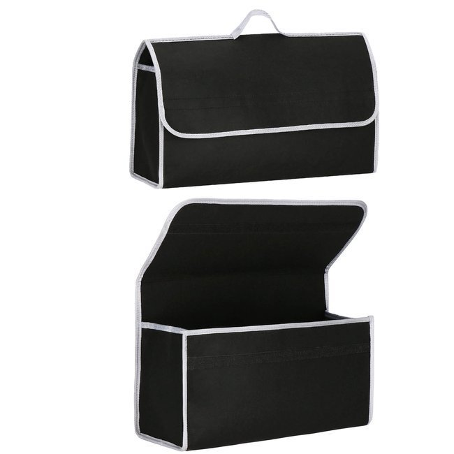 Univerzálna taška do batožinového priestoru auta. Udrží v kufri vozidla poriadok a bezproblémov do nej dáte všetko potrebné vybavenie na vaše cesty. S uchom pre ľahké prenášanie a zatváraním na suchý zips. Priestranné a skladné, zosilnené švy a lemovanie. Veľkosť 50x31x16 cm.