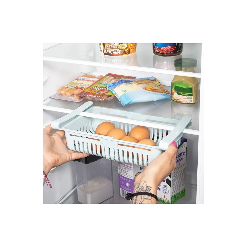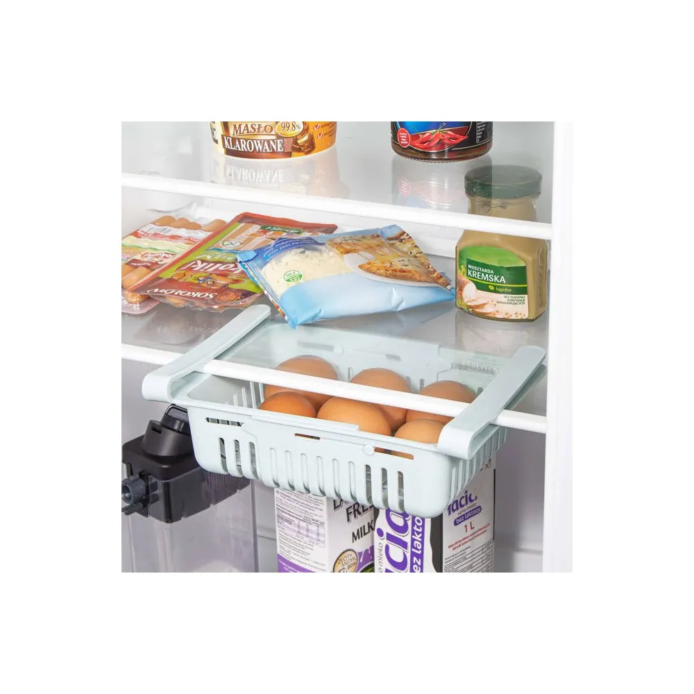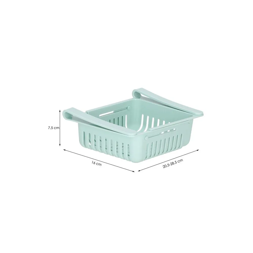 Prídavný šuplík do chladničky vo svetlo zelenej farbe, s nastaviteľnou šírkou 20,5 - 28,5 cm. Vetracie a odkvapkávacie otvory, možnosť uchytenia na polici, pevná konštrukcia, závesná funkcia. Perfektný pre vajíčka, syry, ovocie alebo zeleninu, ale aj k stolu na drobné kancelárske doplnky.