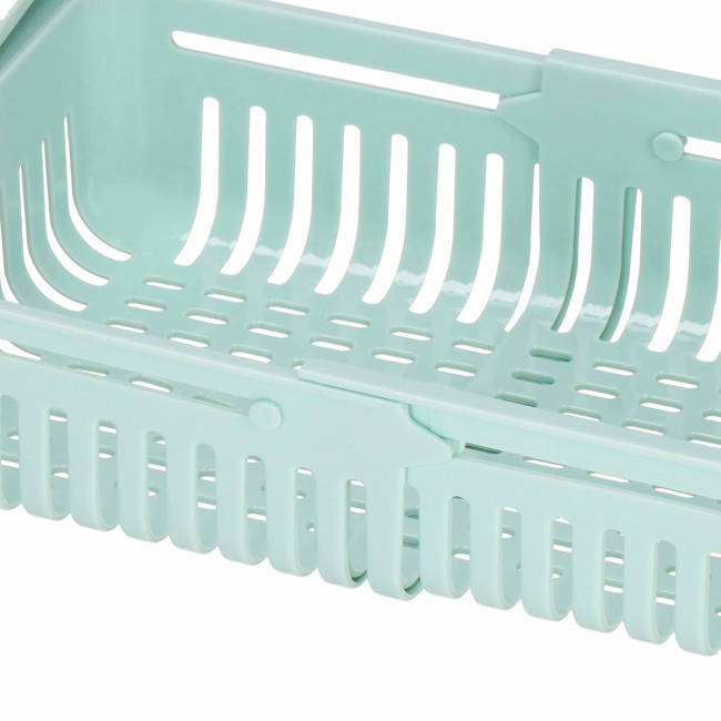 Prídavný šuplík do chladničky vo svetlo zelenej farbe, s nastaviteľnou šírkou 20,5 - 28,5 cm. Vetracie a odkvapkávacie otvory, možnosť uchytenia na polici, pevná konštrukcia, závesná funkcia. Perfektný pre vajíčka, syry, ovocie alebo zeleninu, ale aj k stolu na drobné kancelárske doplnky.