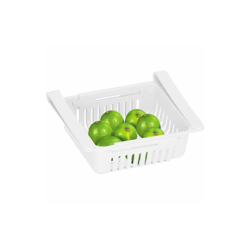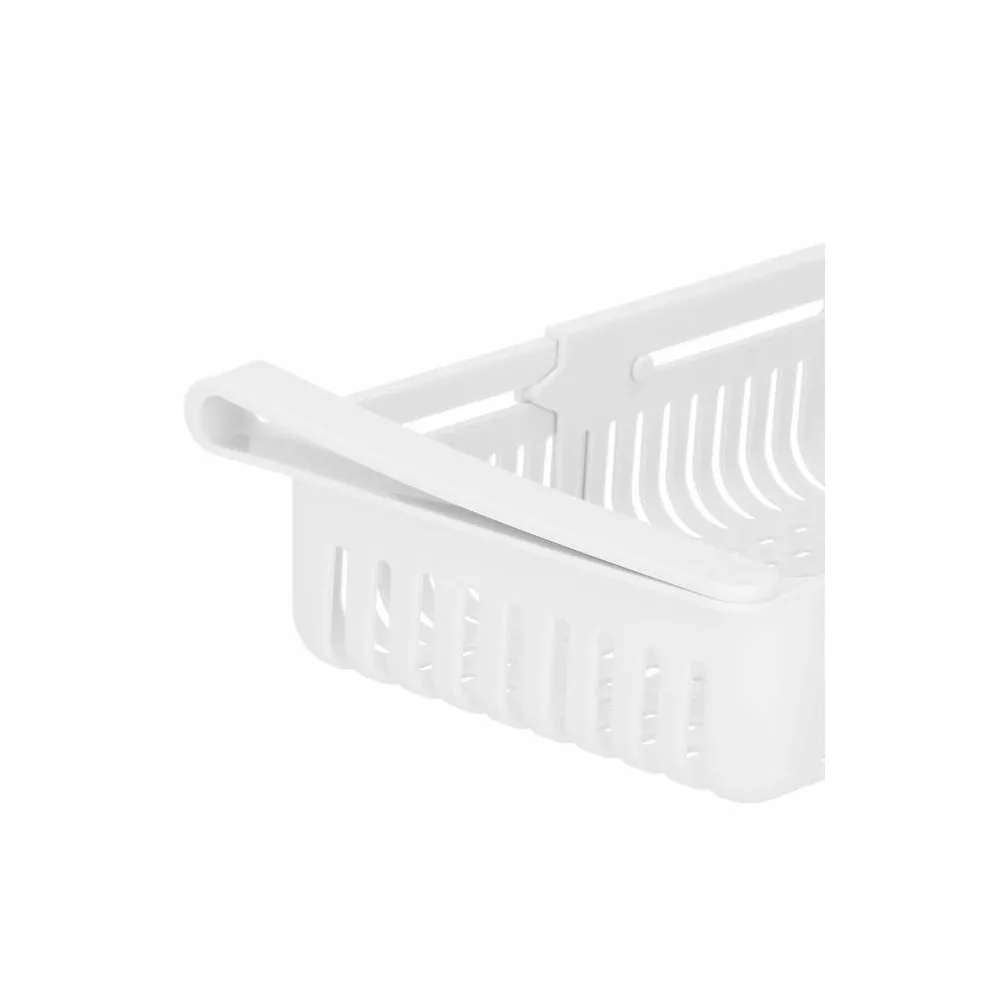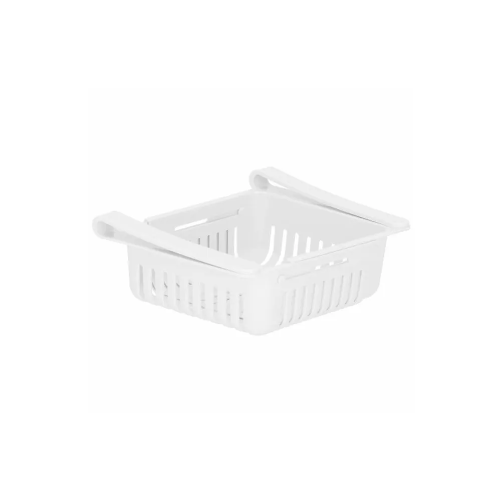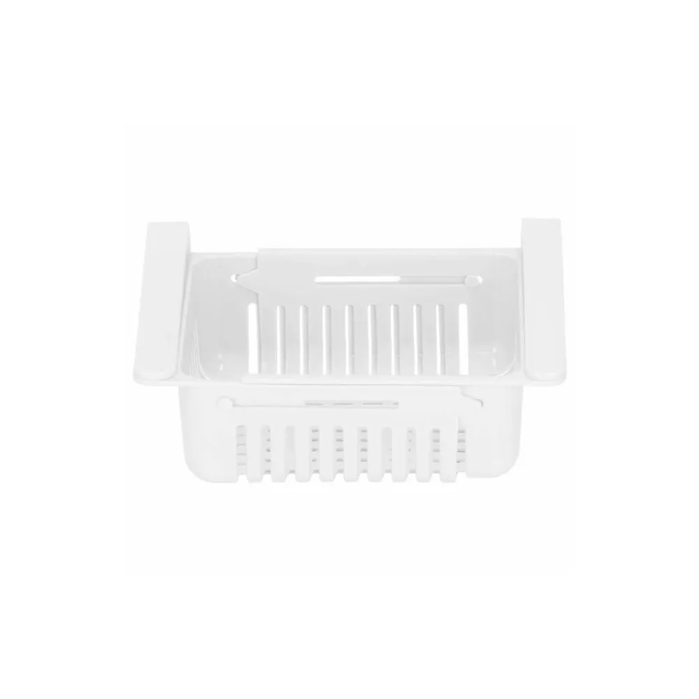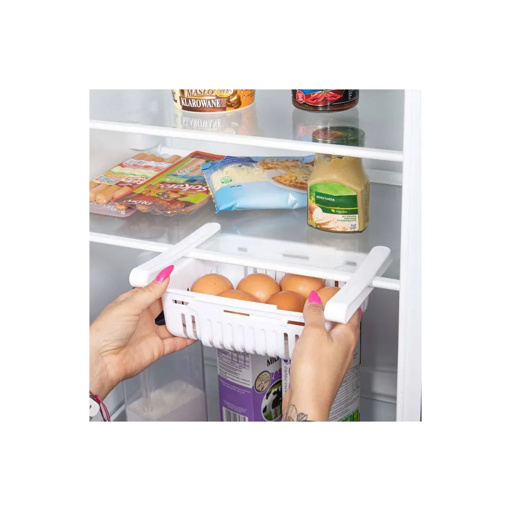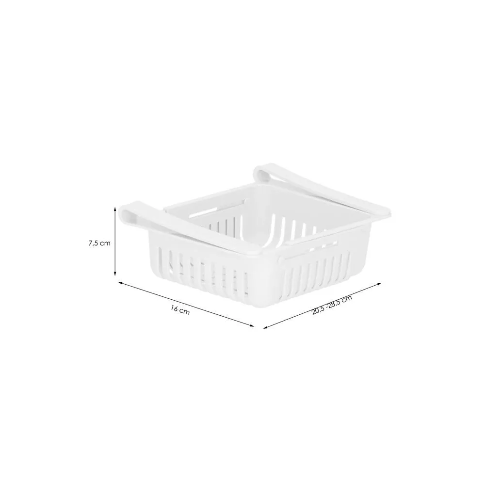 Prídavný šuplík do chladničky v bielej farbe, s nastaviteľnou šírkou 20,5 - 28,5 cm. Vetracie a odkvapkávacie otvory, možnosť uchytenia na polici, pevná konštrukcia, závesná funkcia. Perfektný pre vajíčka, syry, ovocie alebo zeleninu, ale aj k stolu na drobné kancelárske doplnky